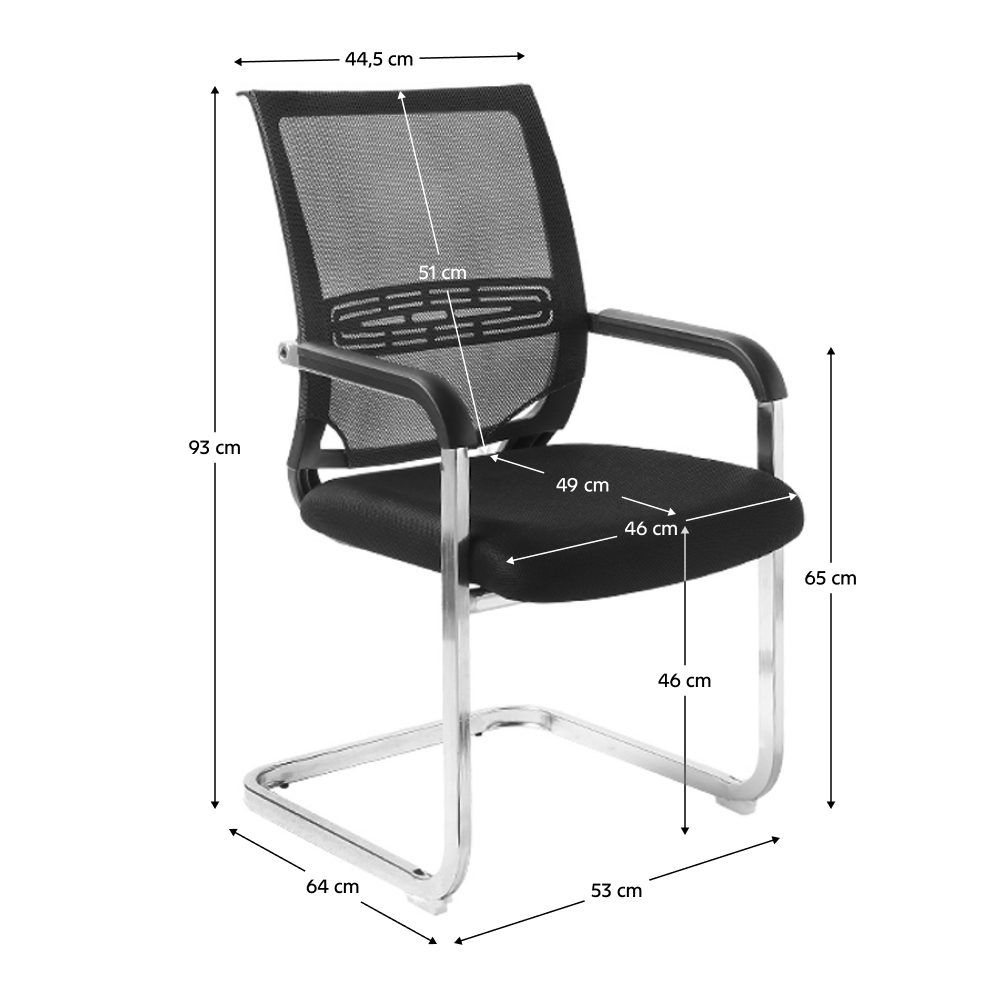 Materiál: sieťovina/plast/kovOderuodolnosť textílie podľa testu Martindale: 90 000 oderovFarba: čierna/chrómRozmery (ŠxHxV): 53x64x93 cmVýška sedu: 46 cmHĺbka sedu: 49 cmŠírka sedu: 46 cmVýška chrbtovej opierky: 51 cmŠírka chrbtovej opierky: 44,5 cmNosnosť: 100 kgChrómová podstavaZasadaciaS plastovými opierkami na rukyDodávané v demonte