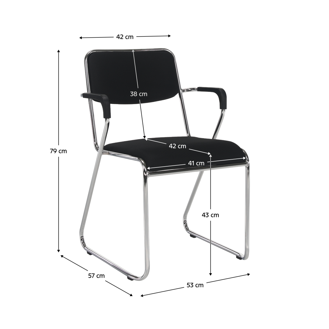 Farba: čierna/chrómMateriál: sieťovina/plast/kovOderuodolnosť textílie podľa testu Martindale: 90 000 oderovRozmery (ŠxHxV): 53x57x79 cmVýška sedu : 43 cmHĺbka sedu : 42 cmŠírka sedu: 41 cmŠírka chrbtovej opierky: 41 cmVýška chrbtovej opierky: 38 cmNosnosť: 110 kgStohovateľnáDodávané v monte.