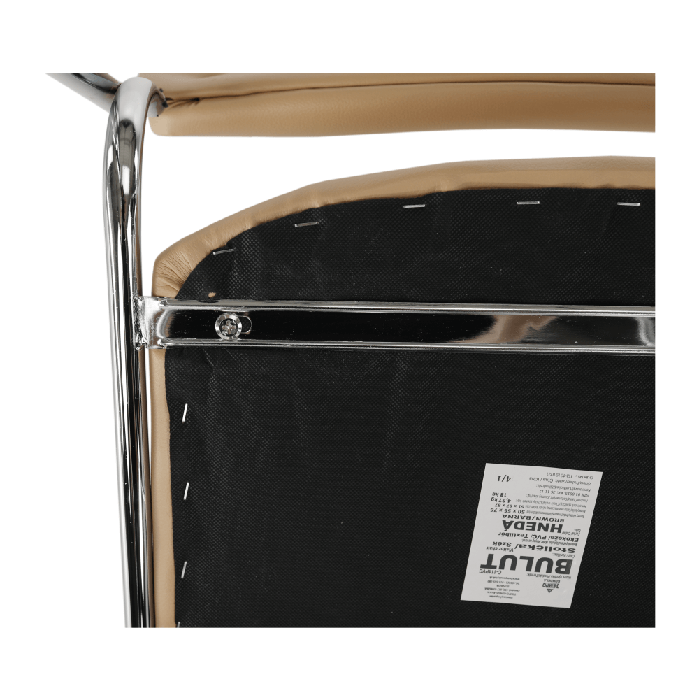 Farba: hnedá/chrómMateriál: ekokoža/kovOderuodolnosť textílie podľa testu Martindale: 100 000 oderovRozmery (ŠxHxV): 50x56x76 cmVýška sedu : 43 cmHĺbka sedu : 41 cmŠírka sedu: 40 cmVýška chrbtovej opierky : 34 cmŠírka chrbtovej opierky : 43 cmNosnosť: 110 kgStohovateľnáDodávané v monte.