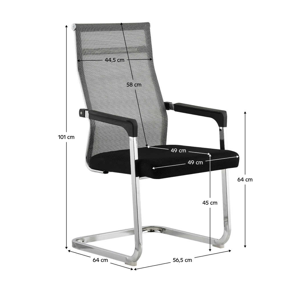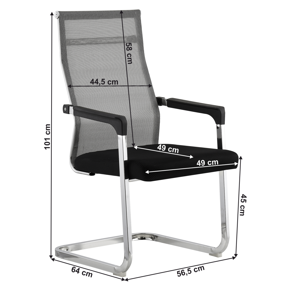 Materiál čalúnenie: sieťovinaOderuodolnosť textílie podľa testu Martindale: 90 000 oderovFarba: sivá/čiernaMateriál konštrukcia: kovFarba: chrómová povrchová úpravaRozmery (ŠxHxV): 56,5x64x101 cmVýška sedu: 45 cmHĺbka sedu : 49 cmŠírka sedu : 49 cmVýška chrbtovej opierky: 58 cmŠírka chrbtovej opierky: 44,5 cmNosnosť: 120 kgChrómová podstavaPlastové opierky na rukyDodávané v demonte