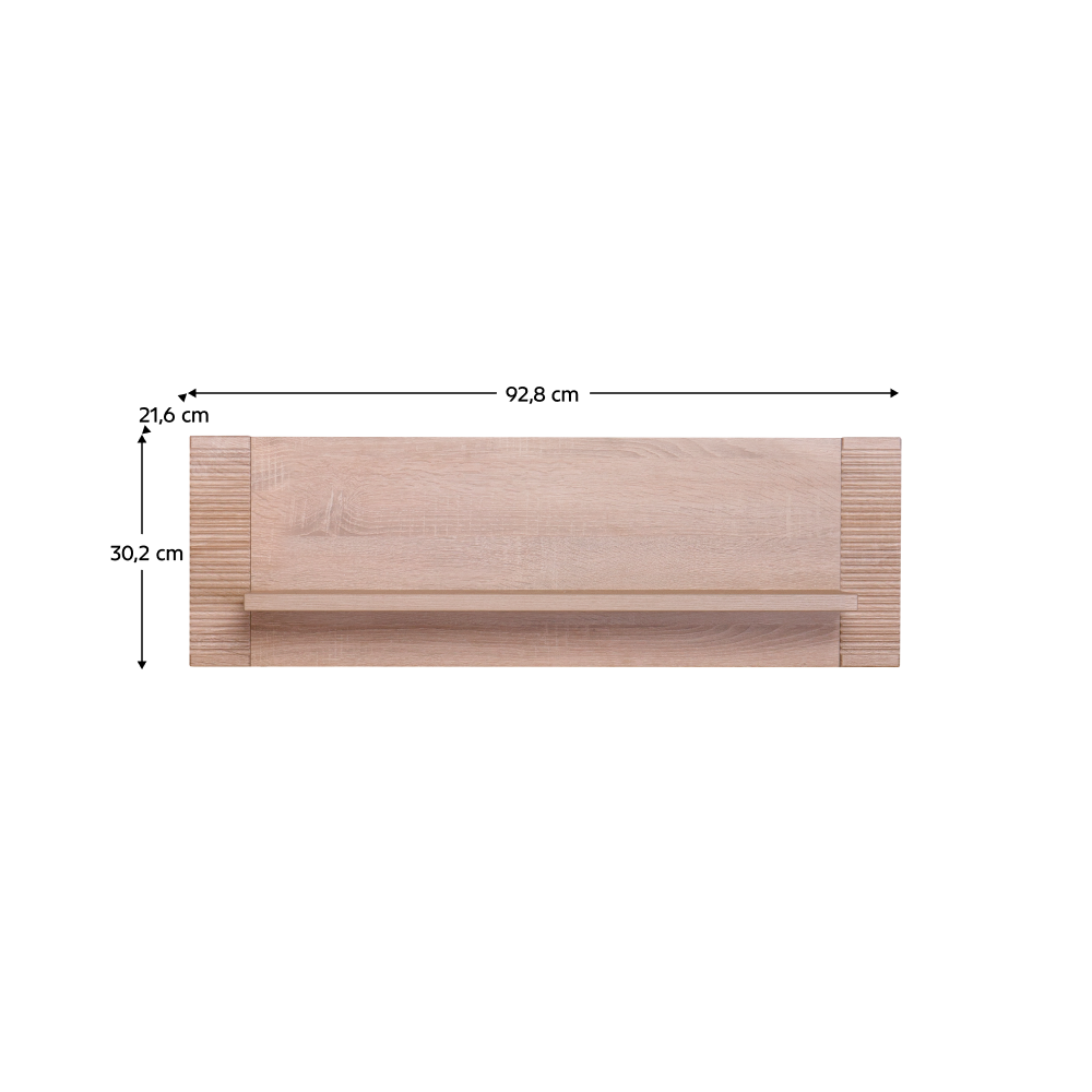 Závesná polica typ 16, Materiál: DTD laminovaná. Farebné prevedenie: dub sonoma. Rozmery (ŠxHxV): 92,8x21,6x30,2 cmHrúbka materiálu: 16 mmDodávaná v demonte.