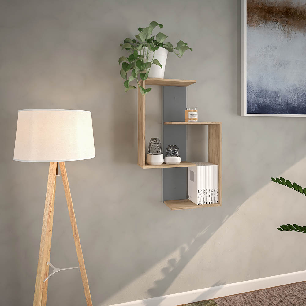 KONDELA Závesná polica, dub artisan/grafit, VALPA