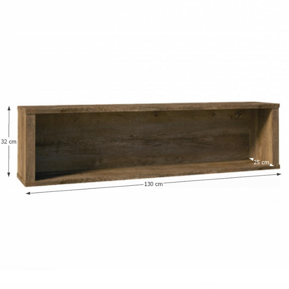 Závesná polica W1, MONTANAMateriál: DTD laminovanáFarebné prevedenie: dub lefkas tmavýRozmery (ŠxHxV): 130x25x32 cm Hrúbka materiálu: 22 mmDodávané v demonte.