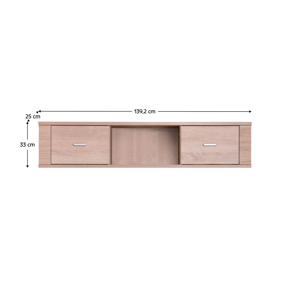 Závesná skrinka typ 15Materiál: DTD laminovaná. Farebné prevedenie: dub sonoma. Rozmery (ŠxHxV): 139,2x25x33 cmHrúbka materiálu korpus: 16 mmHrúbka materiálu vrchnej dosky: 22 mmHrúbka materiálu spodnej dosky: 22 mmDvojdverová skrinka.Dodávaný v demonte.