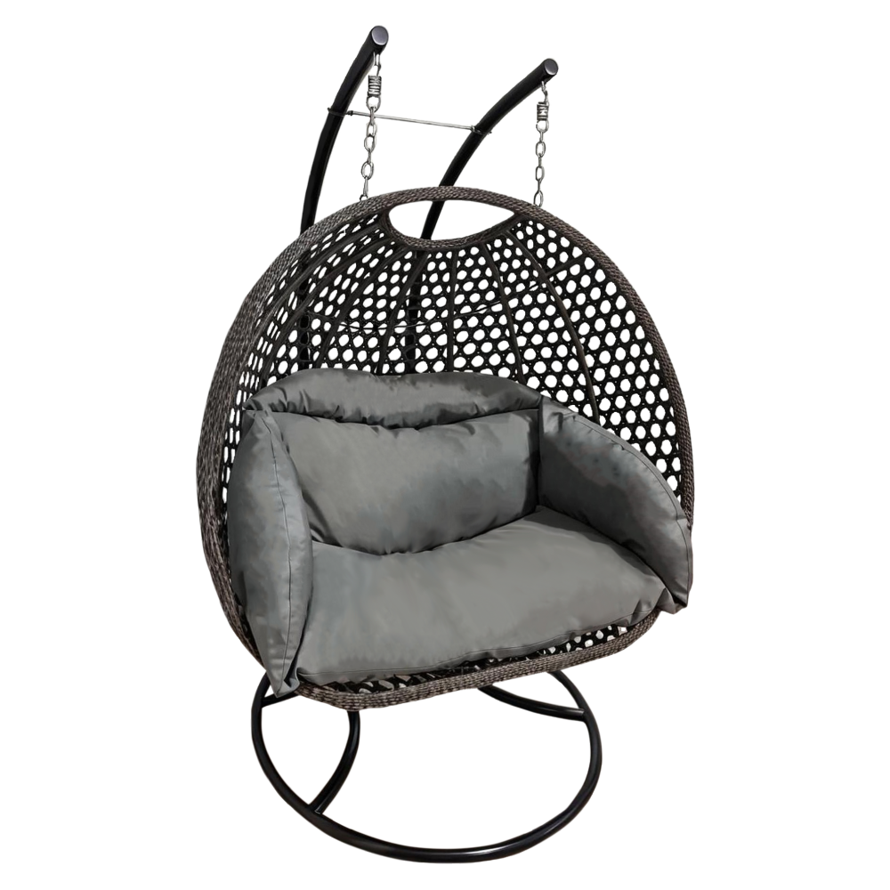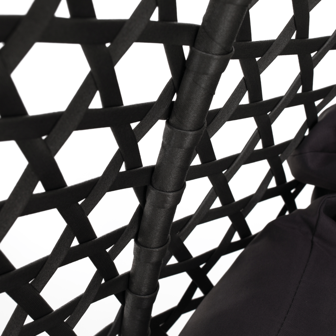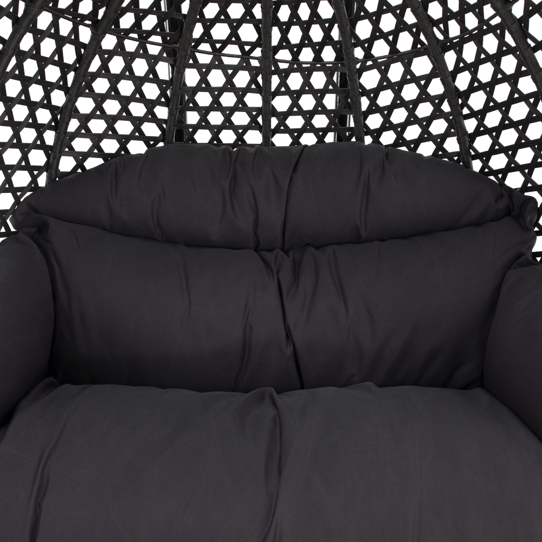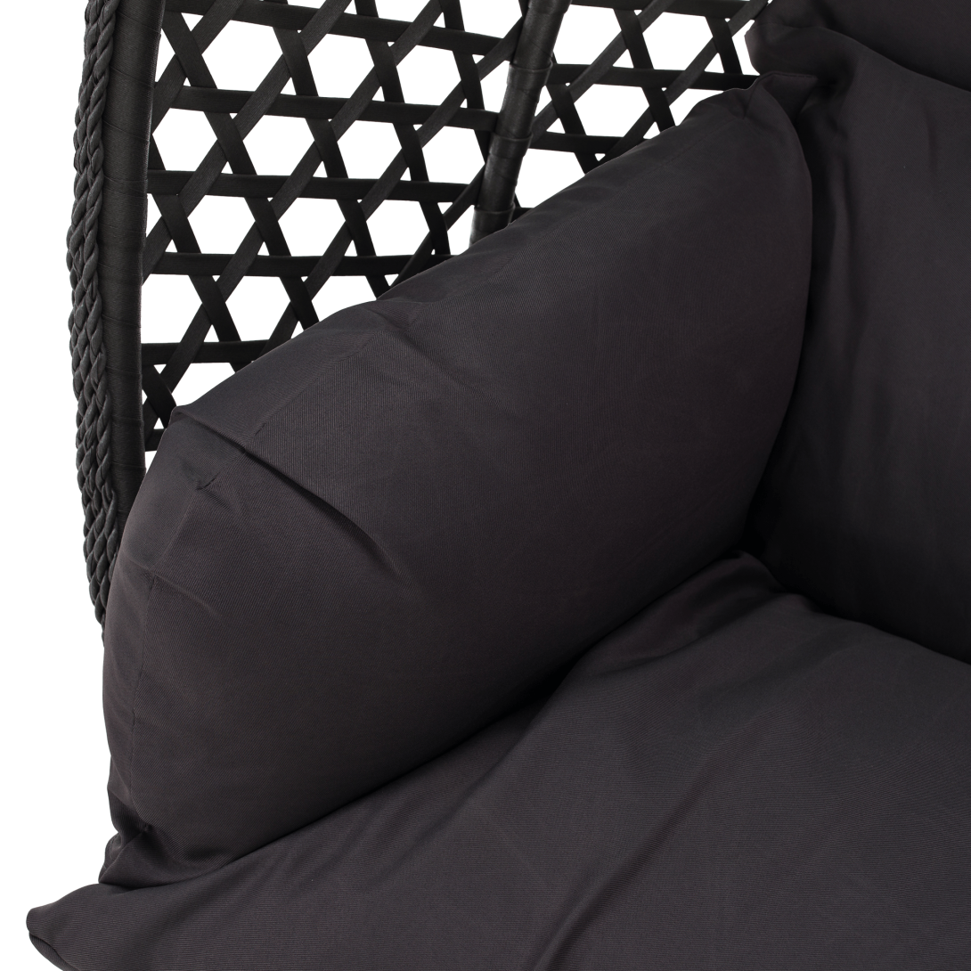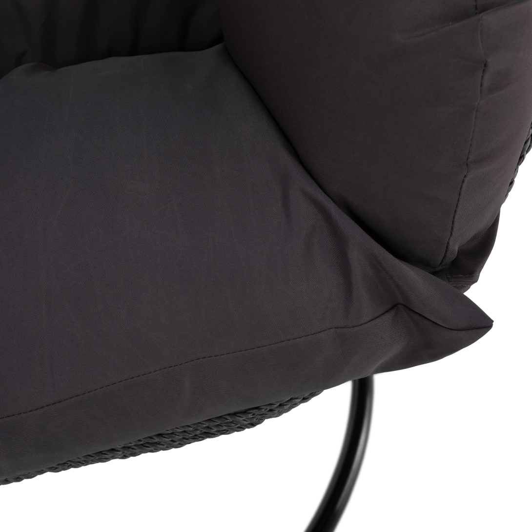 Materiál konštrukcia: oceľFarba: čiernaMateriál kreslo: umelý ratanFarba: siváMateriál vankúše: látkaFarba: tmavosiváOderuodolnosť textílie podľa testu Martindale: 95 000 oderovRozmery (ŠxHxV): 137x120x192 cmRozmery stojan (ŠxHxV): 120x120x192 cmRozmery kreslo (ŠxHxV): 137x75x121 cmMaximálna nosnosť: do 200 kgV exteriéri doporučujeme zabezpečiť kreslo ochranným krytom alebo plachtouDodávané so stojanomDodávané s vankúšmiDodávané v demonte