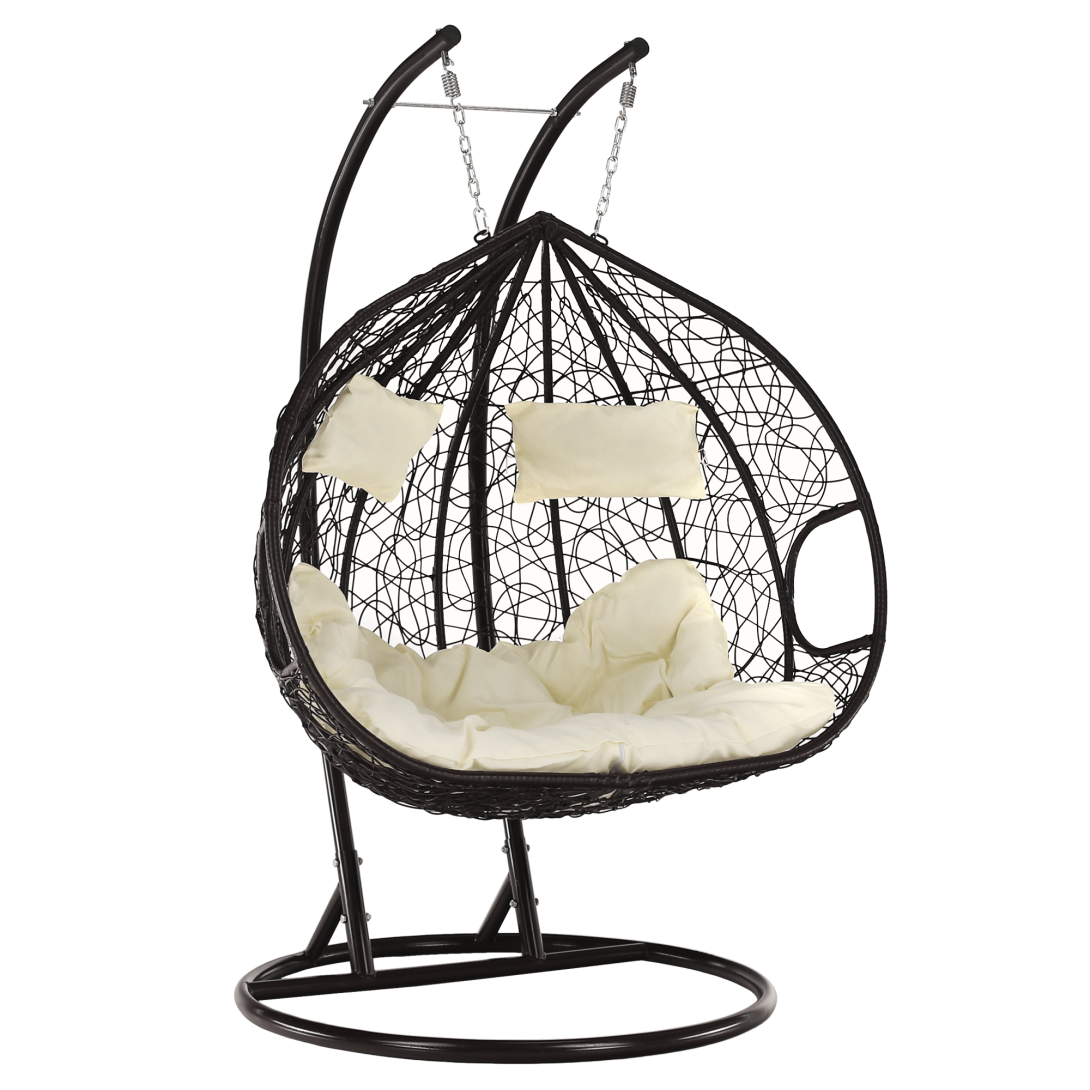 KONDELA Závesné dvojkreslo, hnedá/krémová, DALVEA 2 NEW