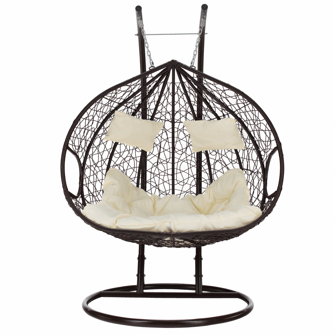 Materiál: kov/umelý ratan/látkaFarba: hnedá/krémováRozmery kresla (ŠxHxV): 133x117x195 cmVýška sedu: 52 cmHĺbka sedu: 70 cmMaximálna nosnosť: 200 kgV exteriéri doporučujeme zabezpečiť kreslo ochranným krytom alebo plachtouVhodné do interiéru aj exteriéruS vankúšomDvojkresloStojan je súčasť baleniaDodávané v demonte