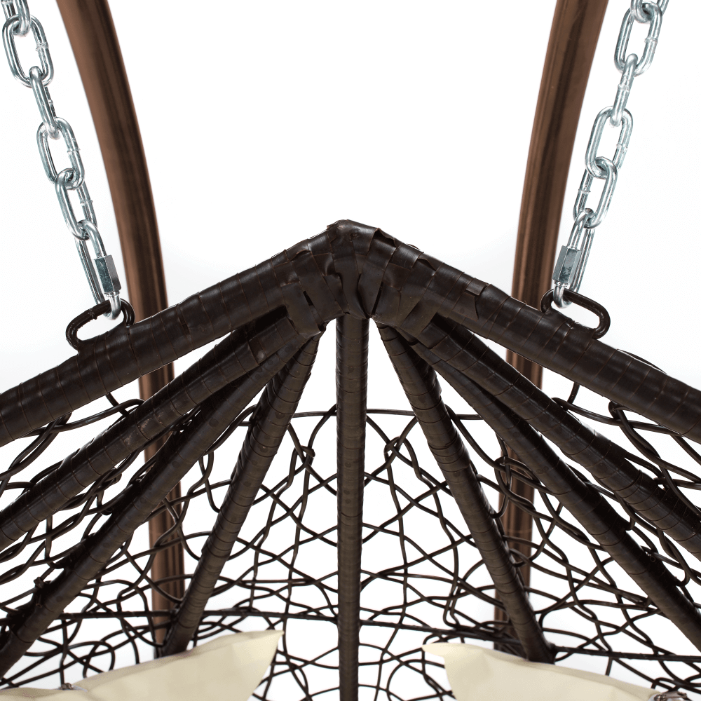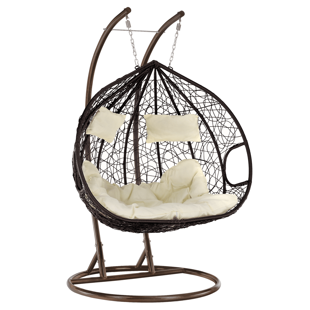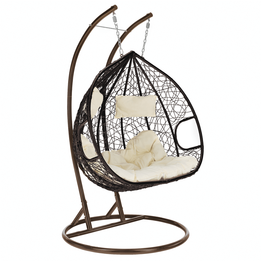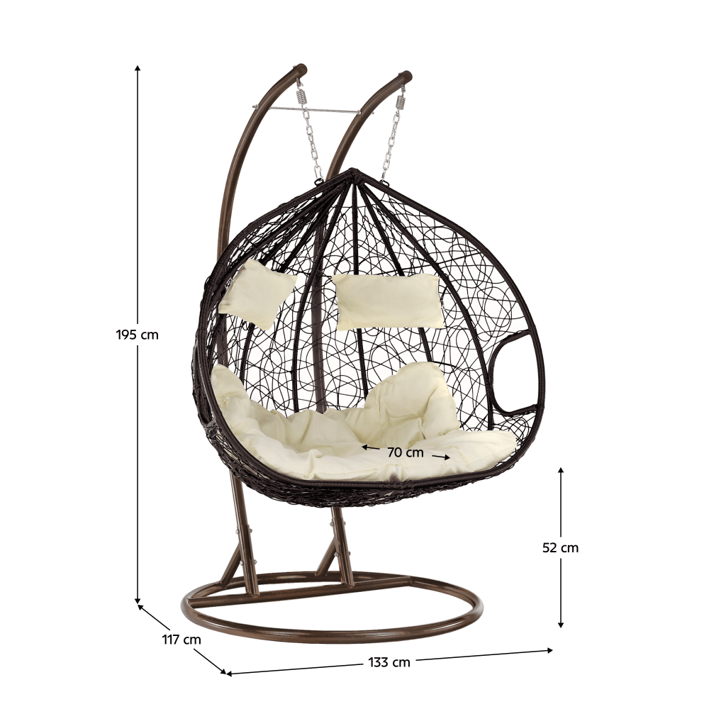 Materiál: kov/umelý ratan/látkaFarba: medená/hnedá/krémováRozmery kresla (ŠxHxV): 133x117x195 cmVýška sedu: 52 cmHĺbka sedu: 70 cmMaximálna nosnosť: 200 kgV exteriéri doporučujeme zabezpečiť kreslo ochranným krytom alebo plachtouVhodné do interiéru aj exteriéruS vankúšomDvojkresloStojan je súčasť baleniaDodávané v demonte