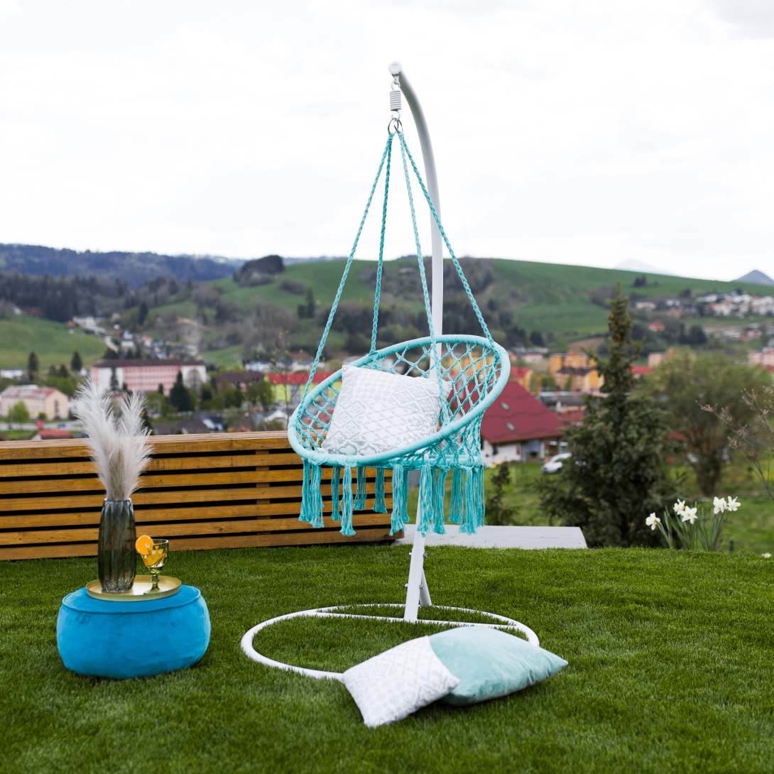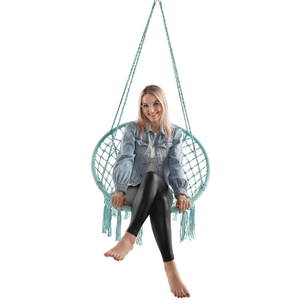 Závesné kreslo AMADOMateriál: 100% bavlnaPrevedenie: mentolováRozmery (ŠxHxV): 80x120 cmPriemer v spodnej časti: 60 cmSúčasťou balenia sú 4 závesné lanáNosnosť do 120 kg
