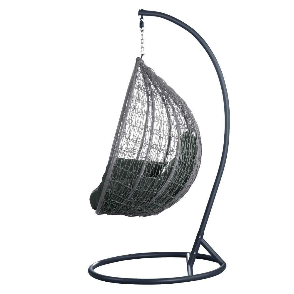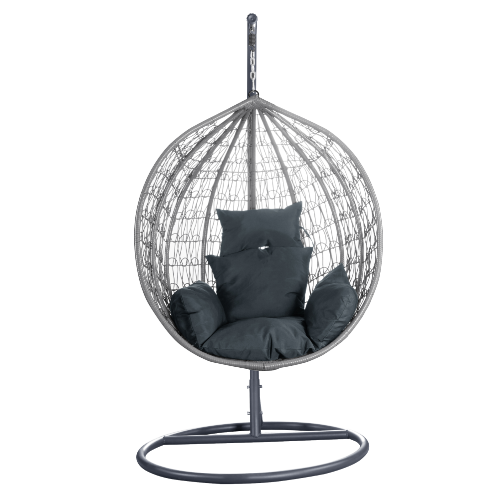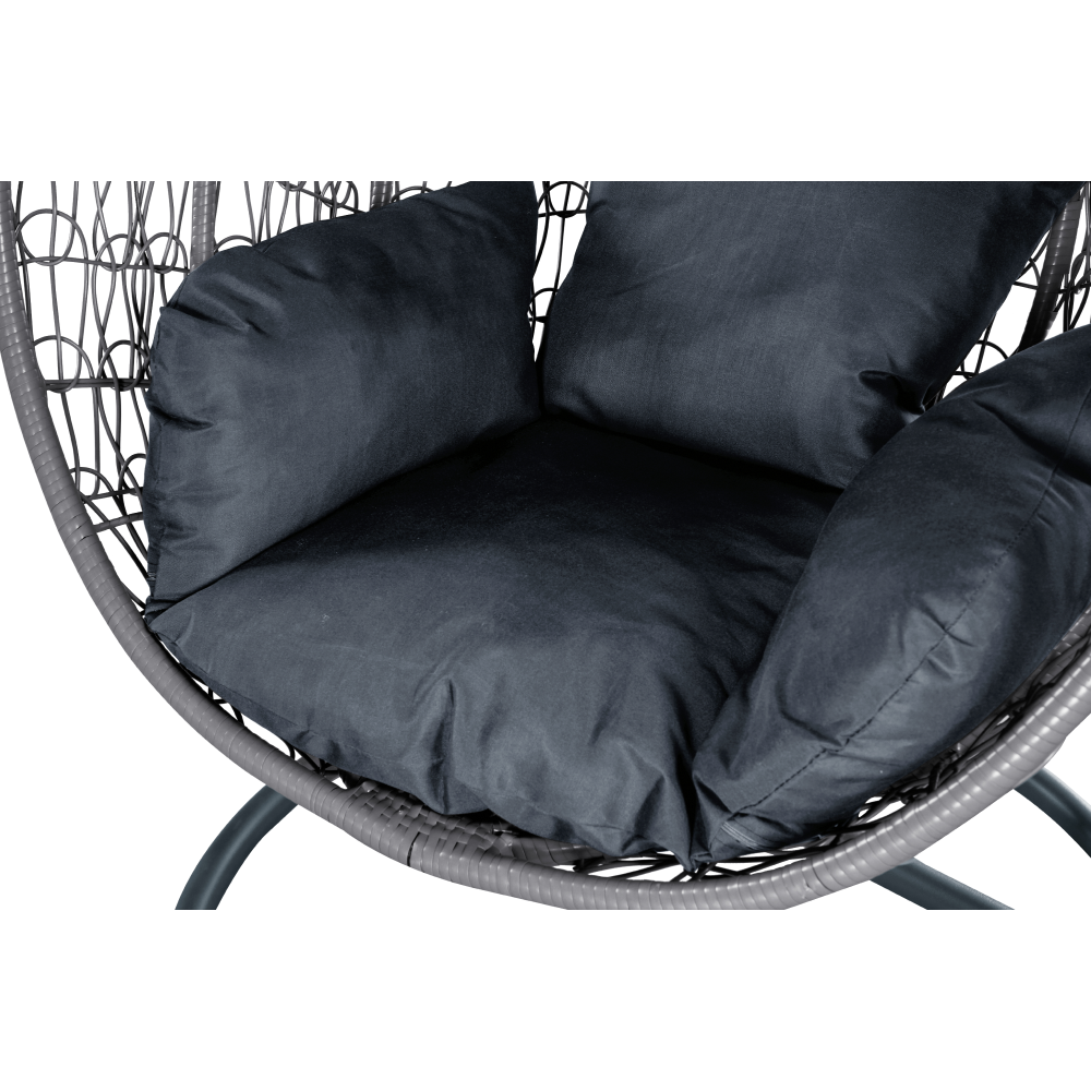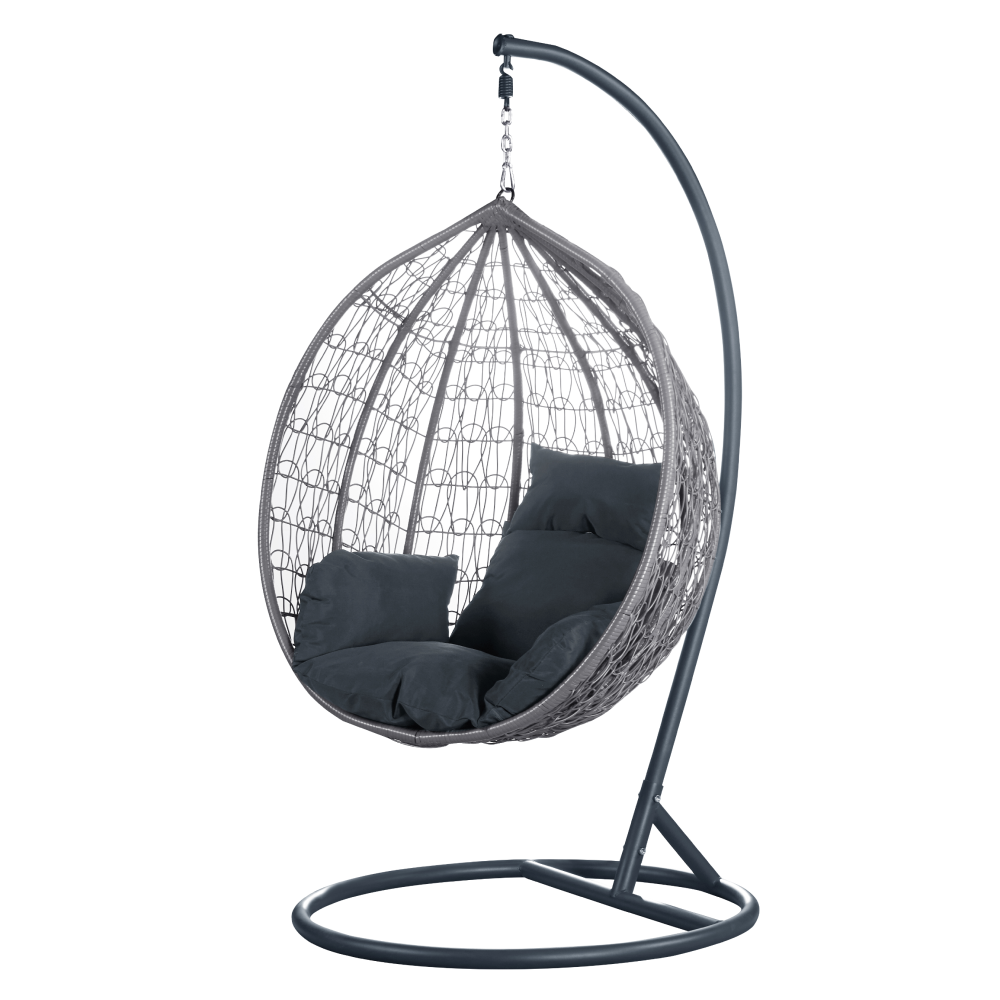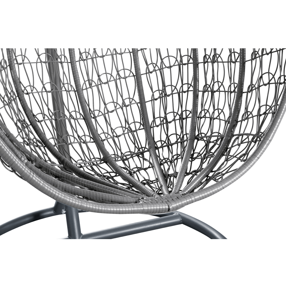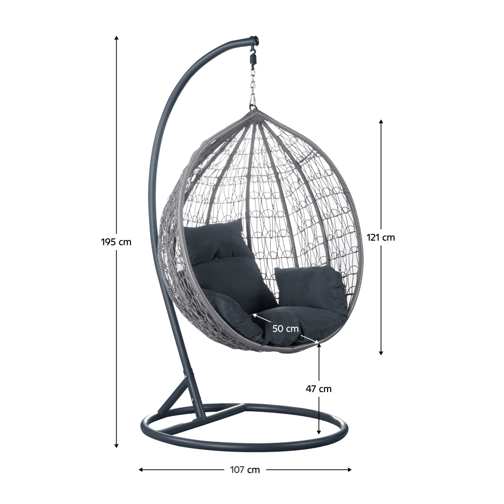 Materiál: technický ratan/oceľ/látkaOderuodolnosť textílie podľa testu Martindale: 95 000 oderovFarba rám/ratan: siváFarba vankúšov: siváVajíčko (ŠxHxV): 107x68x121cmRám (ŠxHxV): 107x107x195 cmVýška rámu: 195 cmVýška sedu: 47 cmHĺbka sedu: 50 cmNosnosť max: 130 kgV exteriéri doporučujeme zabezpečiť kreslo ochranným krytom alebo plachtouDodávané s vankúšmiDodávané v demonte