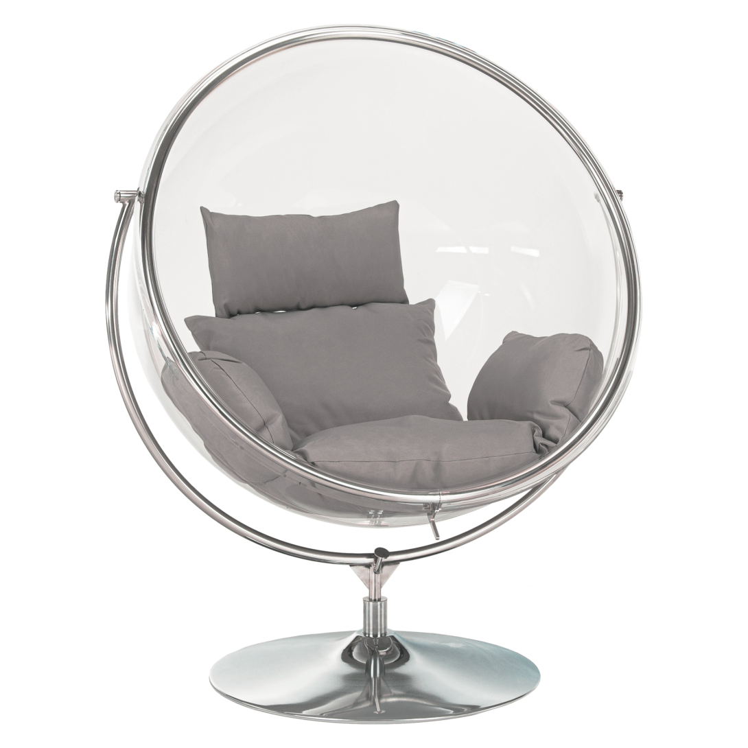 KONDELA Závesné kreslo so stojanom, transparentná/strieborná/sivá, BUBBLE NEW TYP 2