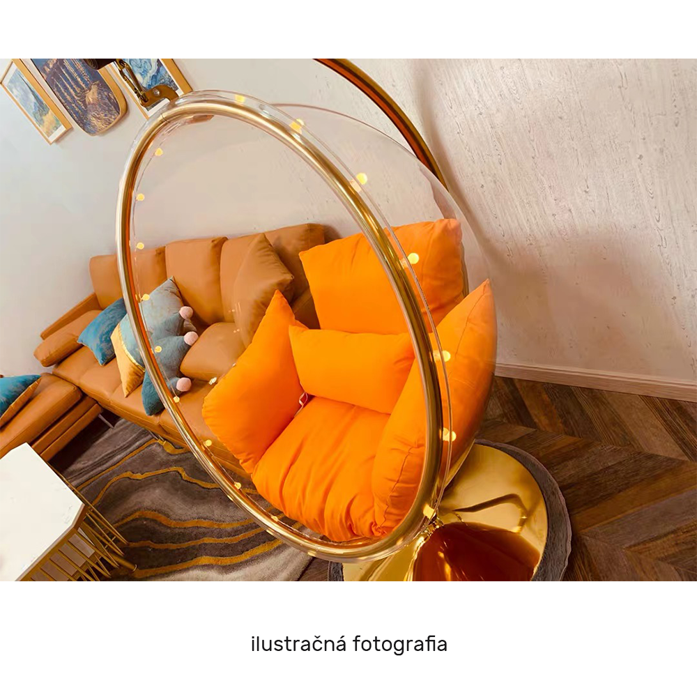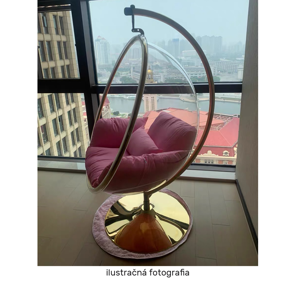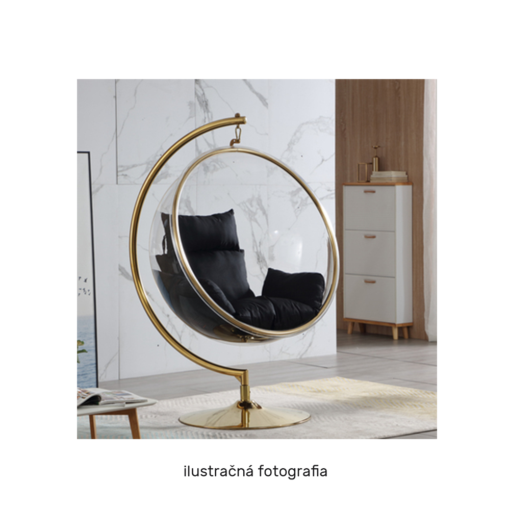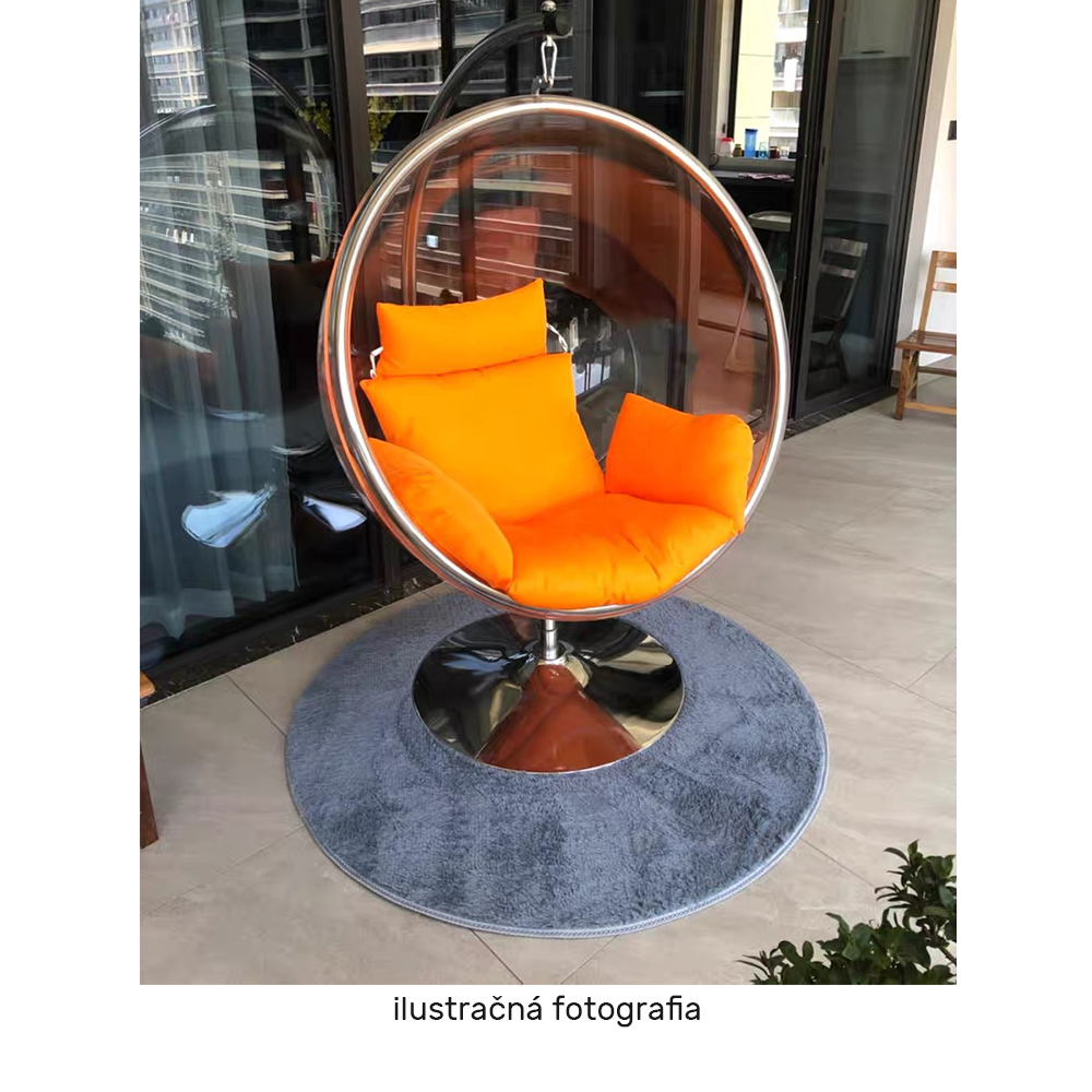 Závesné kreslo so stojanom BUBBLE NEW TYP 3Materiál: nehrdzavejúca oceľ/ akryl/látkaOderuodolnosť textílie podľa testu Martindale: 95 000 oderovFarba rámu: striebornáFarba akrylu: transparentnáFarba vankúša: siváRozmery kresla (ŠxHxV): 106x68x155 cmVnútorný priemer: 97 cmHĺbka sedenia: 60 cmVýška sedu: 74 cm Maximálna nosnosť: do 100 kgVhodné do interiéru aj exteriéruDodávané s vankúšomVankúše sú vodeodolnéSo zipsom na spodnej strane vankúšovKreslo je dodávané so stojanomDodávané v demonte