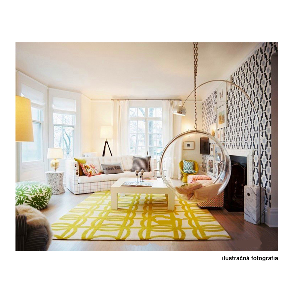 Závesné kreslo BUBBLE NEW TYP 1Materiál: nehrdzavejúca oceľ/ akryl/látkaOderuodolnosť textílie podľa testu Martindale: 95 000 oderovFarba rámu: zlatáFarba akrylu: transparentnáFarba vankúša: bielaRozmery kresla (ŠxHxV): 106x62x106 cmVnútorný priemer: 97 cmHĺbka sedenia: 60 cmDĺžka retiazky: 200 cmMaximálna nosnosť: do 100 kgVhodné do interiéru aj exteriéruDodávané s vankúšomVankúše sú vodeodolnéSo zipsom na spodnej strane vankúšaDodávané v monte