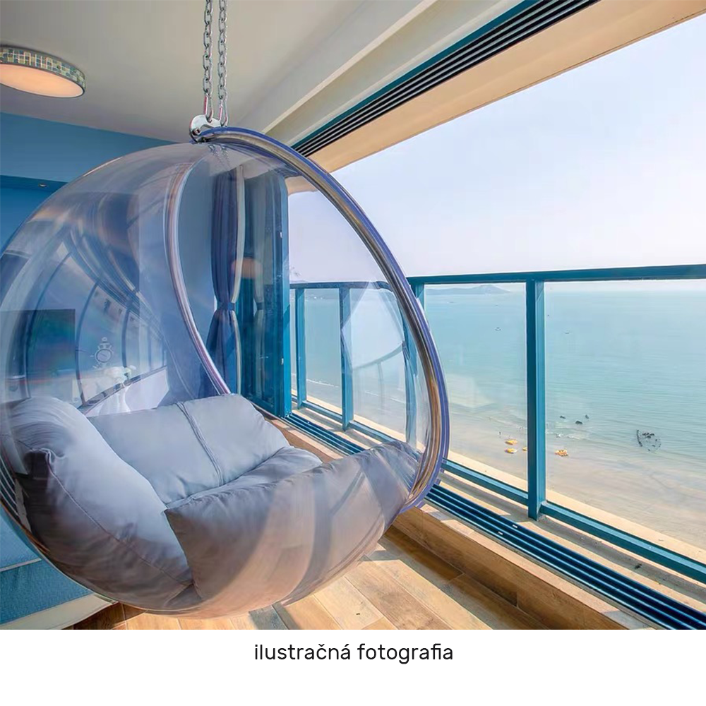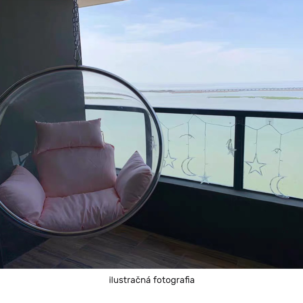 Závesné kreslo BUBBLE NEW TYP 1Materiál: nehrdzavejúca oceľ/ akryl/látkaOderuodolnosť textílie podľa testu Martindale: 95 000 oderovFarba rámu: zlatáFarba akrylu: transparentnáFarba vankúša: ružováRozmery kresla (ŠxHxV): 106x62x106 cmVnútorný priemer: 97 cmHĺbka sedenia: 60 cmDĺžka retiazky: 200 cmMaximálna nosnosť: do 100 kgVhodné do interiéru aj exteriéruDodávané s vankúšomVankúše nie sú vodeodolnéSo zipsom na spodnej strane vankúšaDodávané v monte