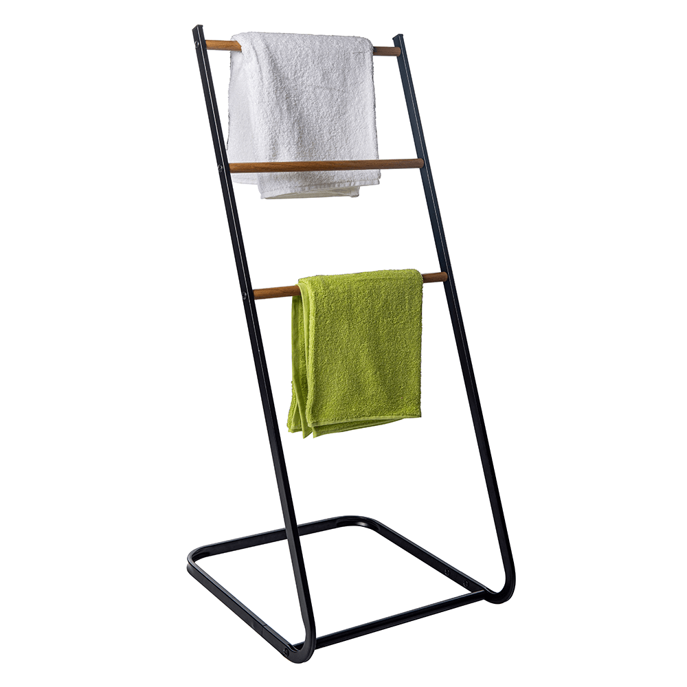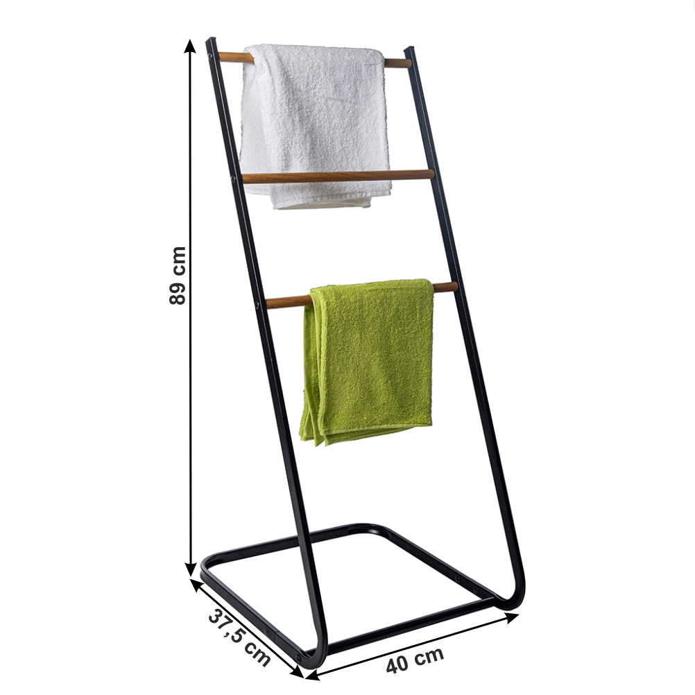 Materiál: kov/drevoFarba: čierna/prírodnáRozmery (ŠxHxV): 40x37,5x89 cmModerný dizajnTri tyčeDodávané v demonte