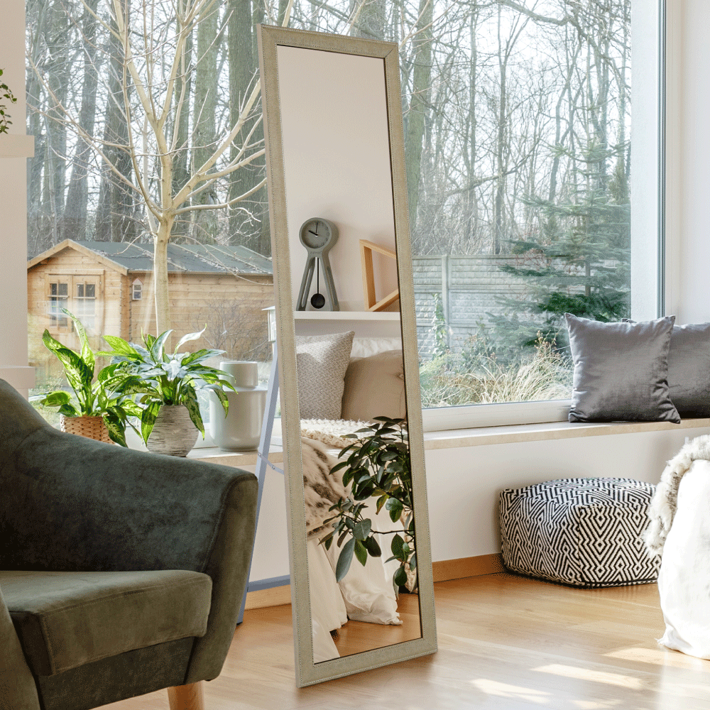 Materiál stojan: kovFarba: bielaMateriál rám: plastFarba: béžováRozmery (ŠxV): 40x150 cmElegantnéSo stojanomDodávané v demonte