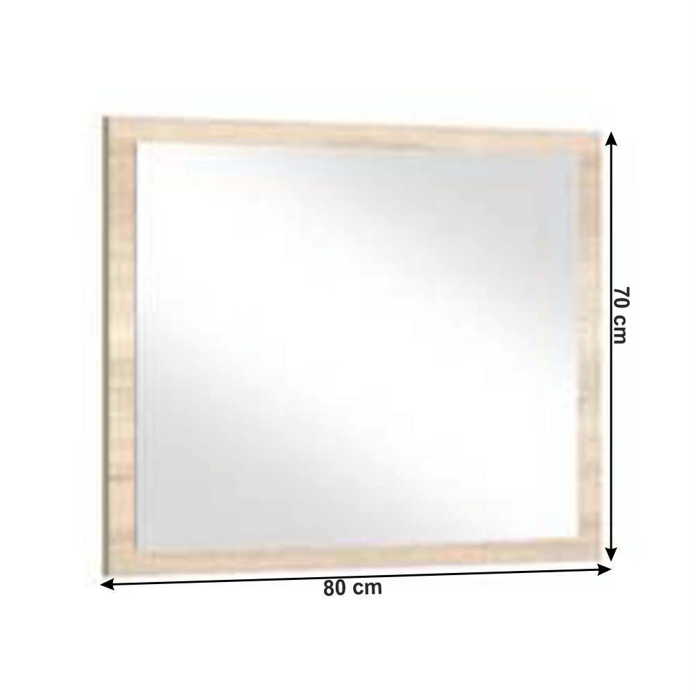 Zrkadlo BAFRAPrevedenie: dub artisanMateriál: DTD laminovaná/ABS hranyRozmery (ŠxHxV): 80x3x70 cmHrúbka materiálu: 16 mmDodávané v monte