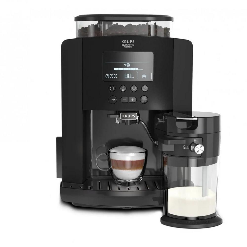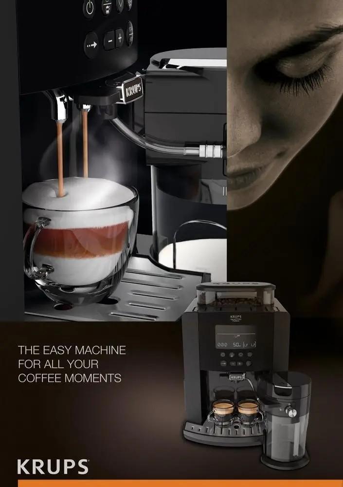 Automatický espresovač KRUPS Arabica Latte predstavuje ľahký spôsob, ako si užiť dokonalé kávové nápoje s explozívnou chuťou a arómou v pohodlí Vášho domova. S používateľsky prívetivým ovládaním a extra veľkou LCD obrazovkou ponúka tento espresovač a kávovar na cappuccino poctivý zážitok z prípravy kávy a prináša vynikajúce espresso a cappuccino priamo do Vašej šálky stlačením tlačidla. Tri predvoľby na mlieko Vám umožnia na mieru upraviť prípravu neodolateľne krémových nápojov s mliekom presne tak, ako ich máte radi. Šikovný systém Vám umožní uložiť až štyri vlastné recepty. Čistenie bez námahy je zaručené vďaka odnímateľnej nádrži na vodu a 3-dielna súprava na mlieko. To všetko so širokým radom vylepšených funkcií a mimoriadnou chuťou kávy systému KRUPS Quattro Force.