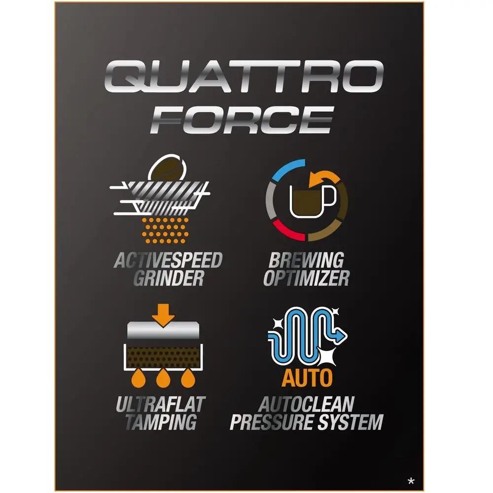 Každý deň, šálka za šálkou, vždy dosiahnete dokonalú chuť kávy. Prístroj ARABICA LATTE je vybavený jedinečnou technológiou KRUPS QUATTRO FORCE, ktorá zaisťuje vyváženú kávu s explozívnou arómou a chuťou. Systém KRUPS Quattro Force optimalizuje každý krok prípravy espressa pre dosiahnutie nekompromisnej kvality od fázy zrnka po šálku – ako by ste mali baristu v pohodlí svojho domova.