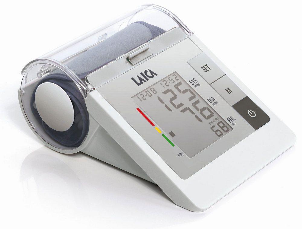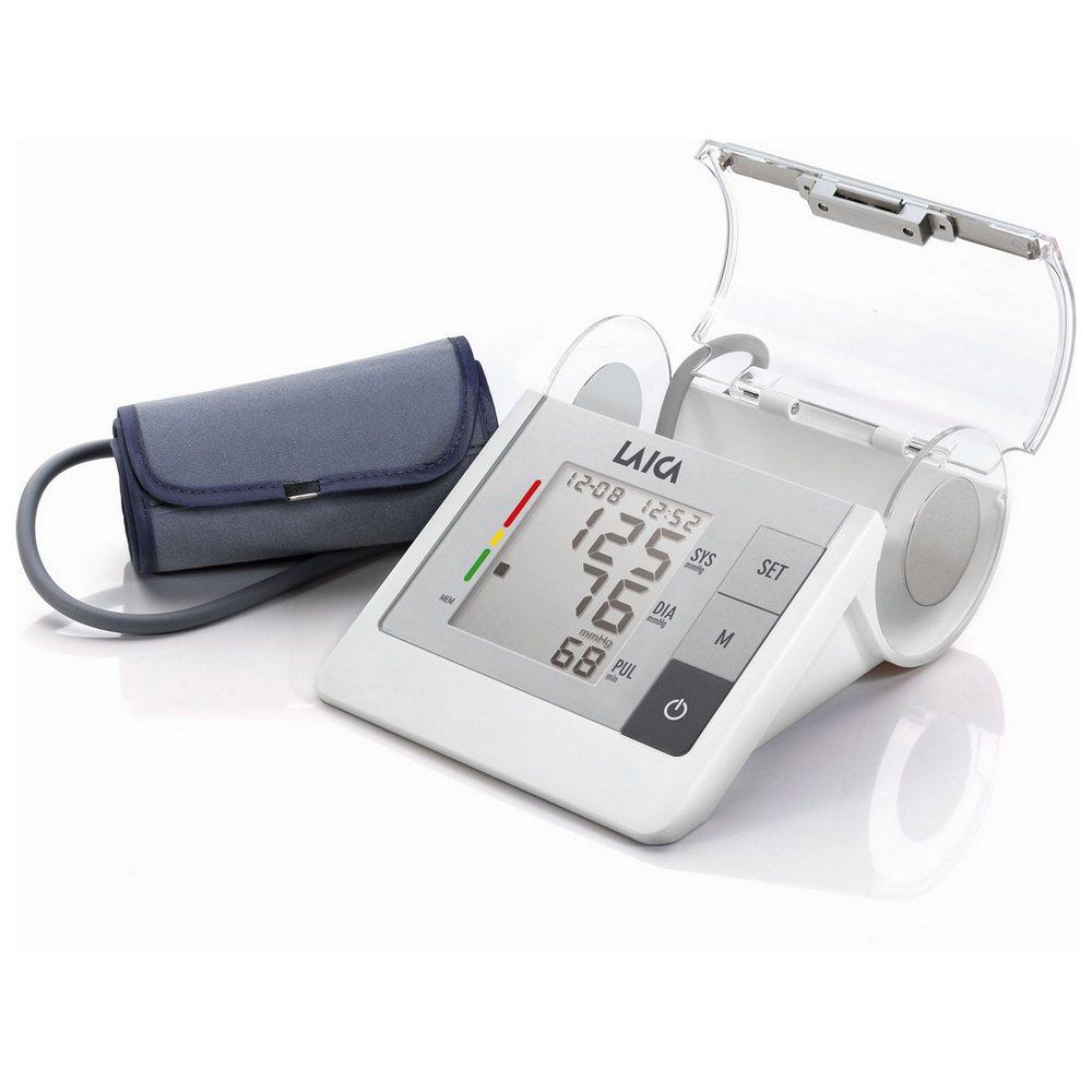Tlakomer LAICA meria systolický, diastolický krvný tlak a tepovú frekvenciu. Pokiaľ sa u vás vyskytne nepravidelnosť srdcového tepu (arytmia), prístroj na to upozorní. Výsledky sú zobrazované na veľkom LCD displeji (8 x 7 cm). Okrem nameraných hodnôt sa zobrazí tiež dátum a čas. Prístroj disponuje extra veľkou manžetou pre obvod ruky až 22–42 cm. Do pamäte si môžete uložiť až 90 nameraných hodnôt. Váš krvný tlak bude kategorizovaný podľa tabuliek Svetovej zdravotníckej organizácie (WHO). Prevádzka je na 4 x AA batérie. Monitor krvného tlaku pre meranie na paži