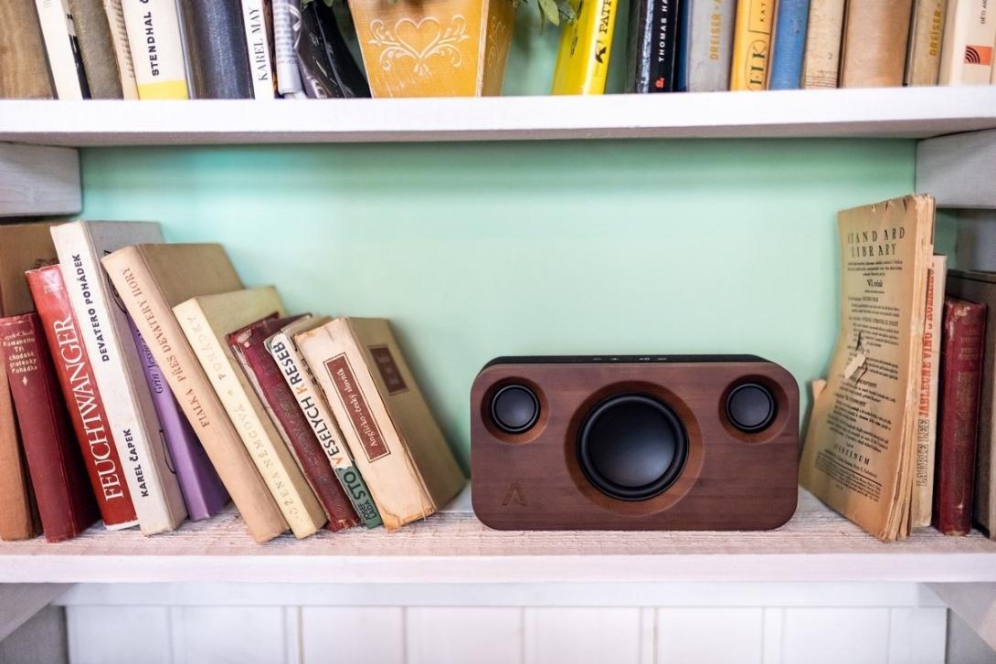 Prednú stranu sme vylepšili dreveným dekórom a boky tkaninou, vďaka ktorej reproduktor skvele vyzerá a dobre padne do ruky.