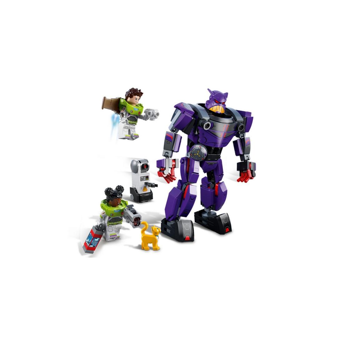 - Postavy z filmu – Súboj so Zurgom (76831) obsahuje 2 minifigúrky vrátane Buzza Lightyeara od Disneyho, figúrku LEGO® robotickej mačky a pohyblivého modelu robota