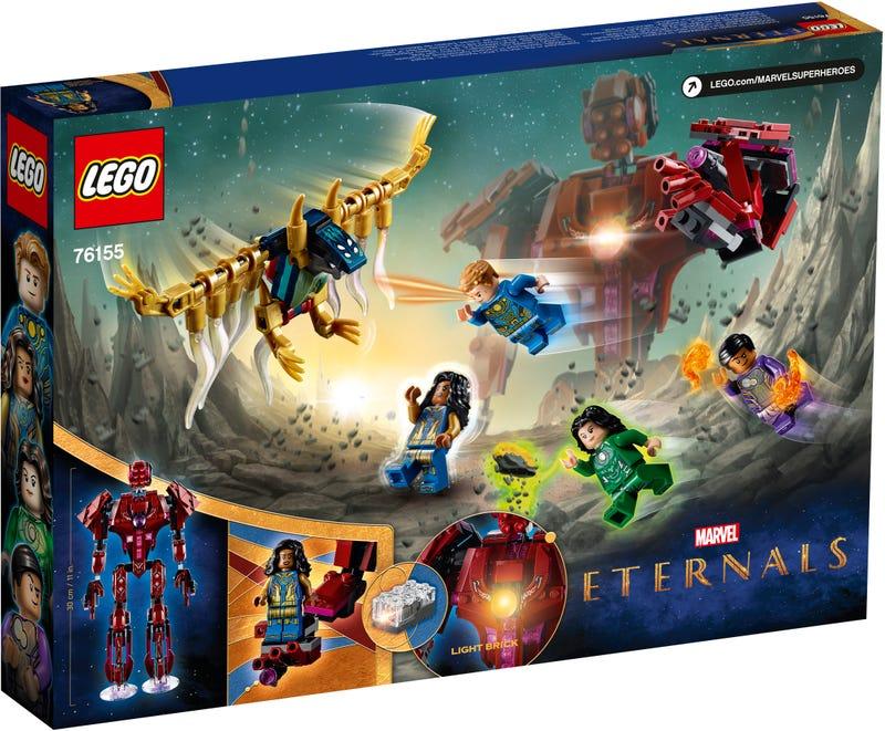 Deti sa môžu pridať na stranu 4 Eternalov, aby spolu porazili Devianta. Eternalovia majú úžasné schopnosti: Ajak vie ako jediná komunikovať s mocnými mimozemskými bytosťami – Celestialmi; Sersi vie pretransformovať hmotu na čokoľvek, na čo si zmyslí; Ikaris má nadľudskú silu; a Kingo vie nechať explodovať pozemskú energiu. V súprave nájdete aj figúrku Celestiala, ktorý môže v ruke držať minifigúrku Eternala. Navyše, ak kupujete súpravu pre fanúšika minifigúrok, minifigúrky Ajak a Kinga sa nachádzajú iba v tejto jedinej úžasnej LEGO stavebnici!