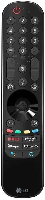 Vylepšenia sa dočkal aj ovládač Magic Remote. Má ergonomický tvar pre príjemné držanie a disponuje tiež scrollovacím kolieskom a funkciou ukazovátka. Vďaka dedikovaným tlačidlám pre Netflix, Disney+ a Prime Video sa jednoducho dostanete do hlavnej ponuky týchto obľúbených služieb. Skutočnou lahôdkou je, že ovládač podporuje bezdrôtovú technológiu NFC. Vďaka tomu môžete využiť funkciu Magic Tap, pomocou ktorej prepojíte svoj telefón s TV jednoduchým poklepaním na ovládač. Kúzelná funkcia!