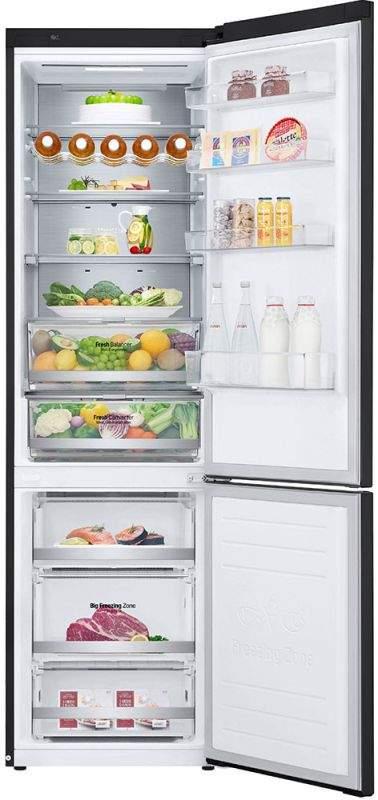 Kombinovaná inteligentná chladnička LG GBB72MCUFN ponúka dostatočne veľký objem vo svojej chladiacej časti, a to až 277 litrov. Chladiaca časť je vybavená mimoriadne tvrdými sklenenými poličkami, ktoré udržia aj veľké množstvo potravín, čo určite využijete hneď, ako si domov donesiete väčší nákup. K dispozícii je aj priehradka na vajcia, polička na víno, 4 dverové police a LED osvetlenie, ktoré príjemne osvetlí vaše potraviny a vy hneď budete vedieť, kde máte čo uložené. Vo výbave chladničky je aj priehľadná plastová zásuvka Fresh Balancer pre uloženie zeleniny a ovocia a Fresch Converter pre skladovanie mäsa, rýb a zeleniny. Multi Air Flow systém zabezpečuje rovnomerné prúdenie vzduchu v celom chladiacom priestore. Tesnenie dverí kombinovanej chladničky LG je ošetrené antibakteriálnou ochranou, ktorá bráni rastu plesní, čím sa zabraňuje deformácií dverného tesnenia.