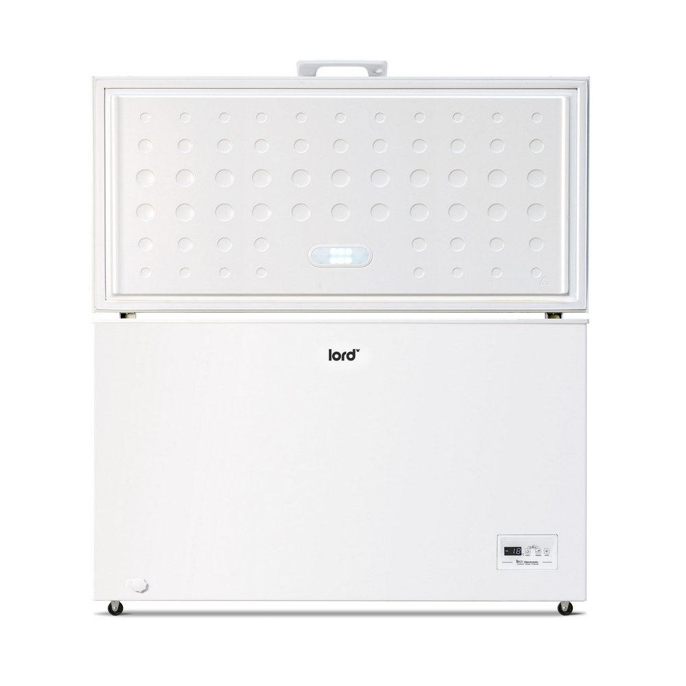 LORD G5 truhlicová mraznička sa začleňuje do voľne stojacich mrazničiek, takže ho možno umiestniť takmer kamkoľvek a to aj tam, kde je až -15 ° C ako je garáž, pivnica, balkón, chata alebo chalupa, kde netemperujete. Kolieska uľahčí presun podľa potreby. Prekvapí vás nielen svojím úžitkovým priestorom a jednoduchým ovládaním, ale hlavne svojou nízkou spotrebou. Radí sa do energetickej triedy E pri ročnej spotrebe 254 kWh. Hlučnosť mrazničky 40 dB. V mrazničke tiež nájdete Invertor BLDC kompresor Pri otvorení ponúkne tento mrazák dostatočný úžitkový objem 371 l, Takže nemusíte mať strach z nedostatku priestoru. Nespornou výhodou je možnosť uskladnenie objemných potravín, diviny. Iste oceníte aj závesný kôš, do ktorého môžete uložiť aj zmrzlinu a ovocie. Aj po stránke výkonu nezaostáva a prekvapí, pretože dokáže zmraziť až 18 kg potravín za 24 hodín a pri výpadku prúdu zostanú potraviny zmrazené ešte po dobu 36 hodín. Mraznička je vybavená funkciou super mrazenie (SuperFrost) pre rýchle zmrazenie. Keď sa na stenách mraziaceho priestoru po dlhšej dobe prevádzky vytvorí vrstva námrazy alebo ľadu ani toho sa báť nemusíte, ľahké odmrazenie a odvod roztopenej vody vpredu Vám to uľahčí. Veko mrazničky je vybavené nielen LED svetlom, ale aj rúčkou na pohodlné otváranie a zatváranie, kde je súčasťou aj zámok.