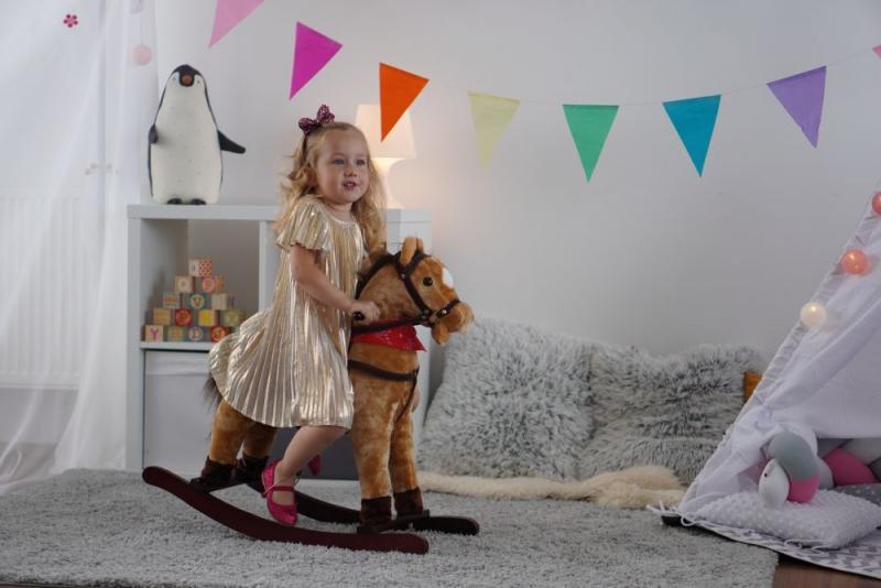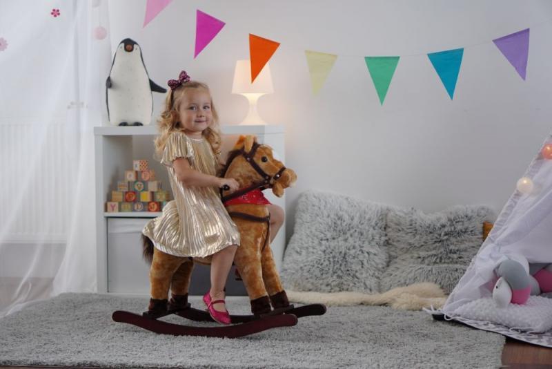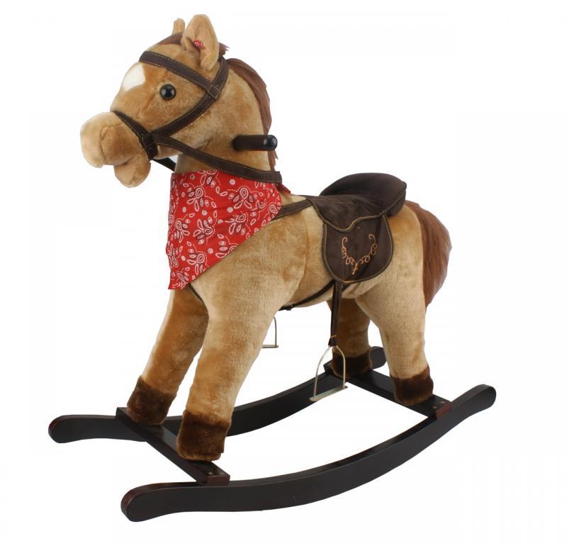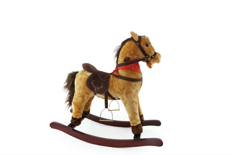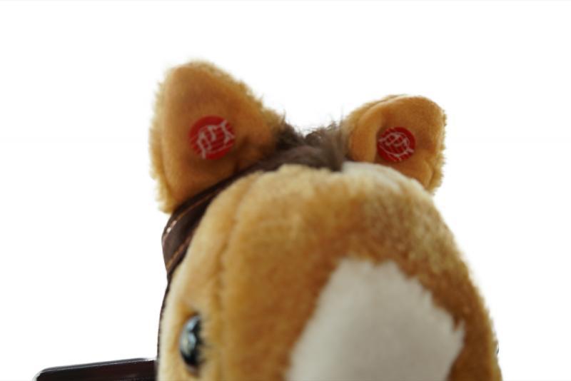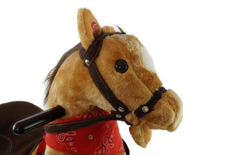 Hojdací kôň, Hnedý hojdací koník, ktorý vydáva zvuky pri stlačení jedného alebo druhého ušká.