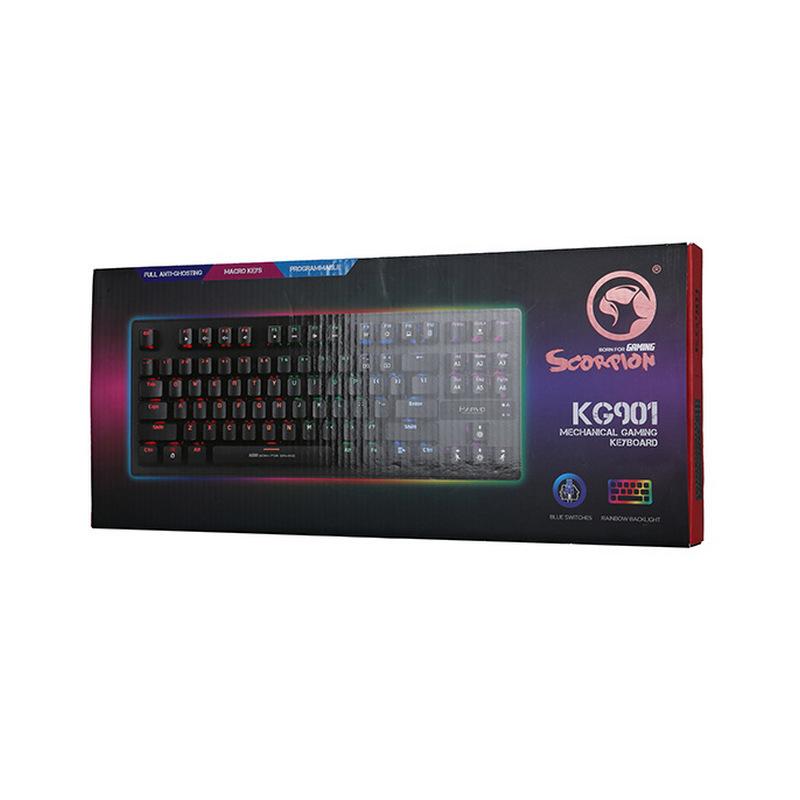 MARVO KG901, KLAVESNICA HERNA, MODRE SPINACE TYP DROTOVA (USB), CIERNA, CZ/SK, MECHANICKA, PODSVIETE