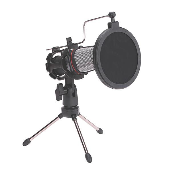 Súčasťou balenie je taktiež Pop filter s priemerom 10 cm. Ten slúži na potlačenie výbušných súhlasiek a zároveň chráni mikrofón pred dychom a slinami. Filter na statív pripevníte pomocou kovového ramena, ktoré môžete zaaretovať v ľubovoľnej vzdialenosti od mikrofónu.
