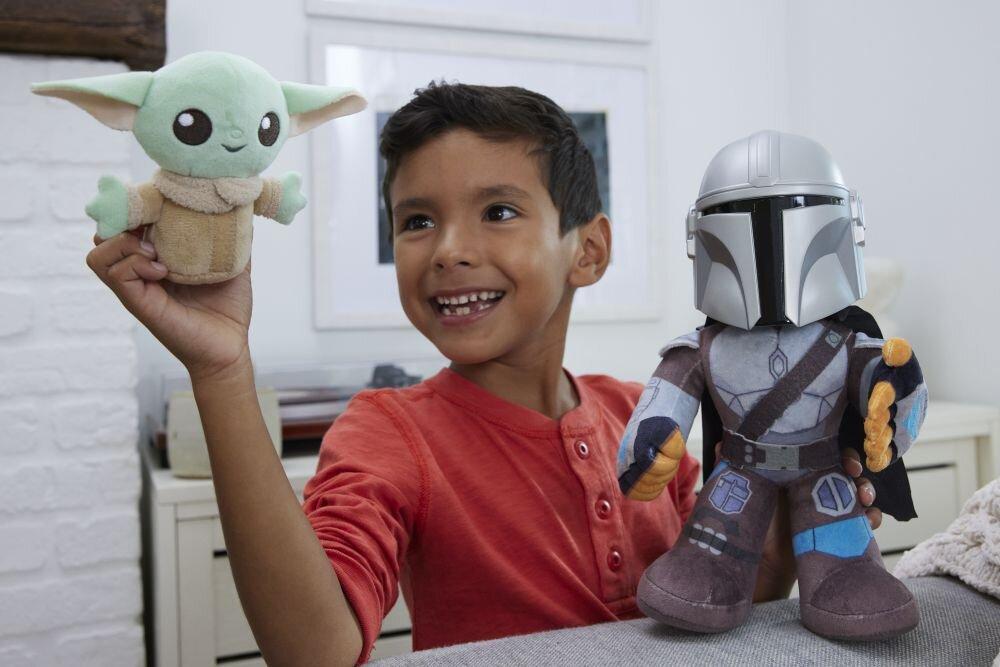 Plyšový Mandalorian, Plyšiak Star Wars Mandalorian a malý Grogu so zvukmi zdôrazňuje puto medzi Grogu a jeho adoptívnym otcom, Mandalorianom alias Din Djarinom.