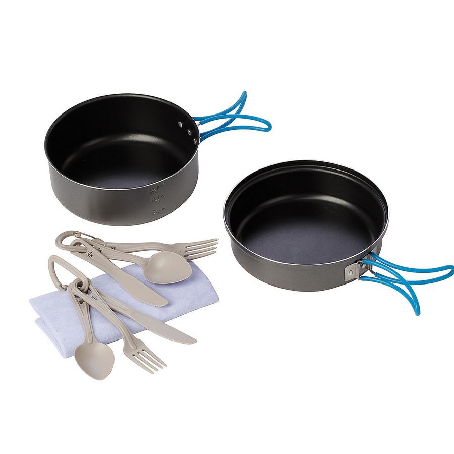 Kempingová sada s nepriľnavým povrchom PTFE – vyrobená z povlakovaného hliníka, Miska: 1,7 L, priemer 180 mm