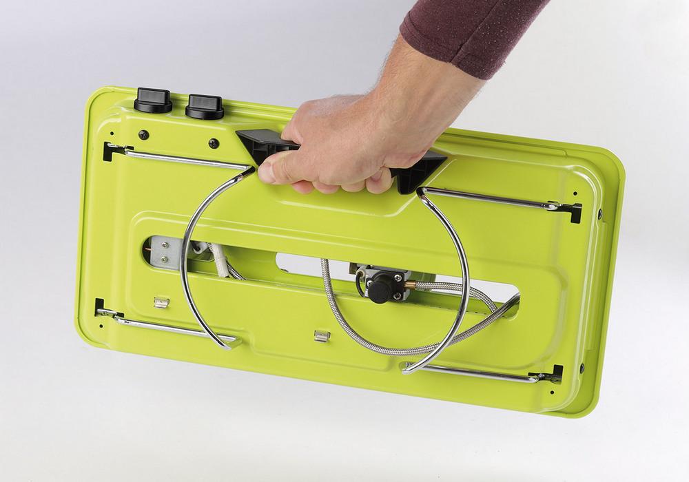 Varič je vybavený piezo zapaľovaním a rukoväťou na jednoduché prenášanie.