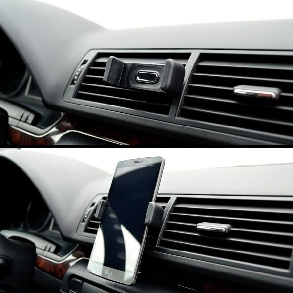 Univerzálny držiak do auta Mobilnet v elegantnom čiernom prevedení s uchytením do mriežky a maximálnou šírkou 80 mm.