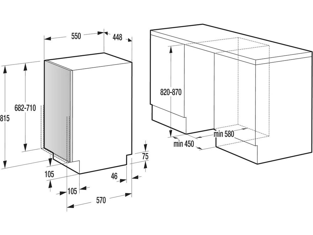 Vstavaná umývačka riadu, Kapacita umývačka 10 súprav, Menovitý príkon 1900 w, Maximálny teplota pre prívod vody 60 °C, Maximálna hlučnosť 45 db(a)re 1 pw