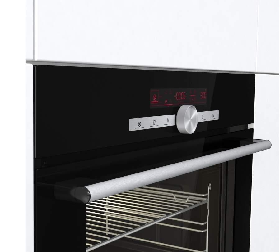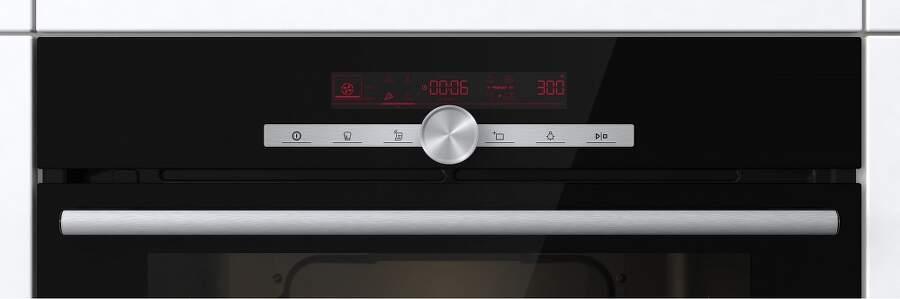 Táto elektrická rúra v elegantnom prevedení z čierneho skla vám okrem tradičného pečenia otvorí dvere k ďalším moderným tepelným úpravám pokrmu. Disponuje funkciou pary, ktorú ocenia predovšetkým priaznivci zdravej výživy. Pripravíte s ňou jedlá rýchlo a šetrne, takže si zachovajú maximum vitamínov a stopových prvkov. Navyše vás prekvapí výborná chuť a prirodzená konzistencia výsledných jedál. Ďalej je rúra vybavená 22 automatickými programami pečenia, ktoré sú navrhnuté presne podľa potrieb konkrétnych jedál. Vyberte iba typ jedla a jeho hmotnosť, rúra zvolí správnu teplotu, vyhrievacie telesá a nastaví čas prípravy. Vykúzlite napríklad výbornú pizzu ako z talianskej reštaurácie (program Pizza 300 °C), pomaly upečiete pečienku a efektívne rozmrazíte hotové porcie jedla. Pokiaľ si radi pochutnávate na hranolkách alebo kuracích nugetách, ale nedoprajete si ich tak často kvôli vysokej kalorickej hodnote, môžete tiež skúsiť program pre teplovzdušné fritovanie bez tuku. Klenutý vnútorný priestor rúry je inšpirovaný tradičným tvarom kamennej pece. Chytro rozmiestnené vyhrievacie telesá a extra veľký objem 77 l zaručujú dokonale prepečené a chrumkavé jedlo zo všetkých strán. Túto vlastnosť oceníte najmä pri príprave hydiny alebo domáceho chleba. Zaujme vás určite aj variabilným rozpätím teploty od 30 do 300 °C. Teleskopický výsuv zabezpečí ľahšiu manipuláciu s plechom, zatiaľ čo tiché zatváranie a otváranie dvierok prinesie komfort pri každodennej prevádzke. Vďaka dvojitému osvetleniu získate perfektný prehľad bez toho, aby ste museli rúru otvárať. Špeciálne dvierka CoolDoor sú vyrobené z trojitého skla, takže zostávajú chladné, a teda bezpečné, aj počas pečenia. Perfektné vyčistenie parou zaistí funkcia ECO CLEAN, vďaka ktorej odstránite aj väčšie nečistoty bez nutnosti použiť čistiaci prostriedok.