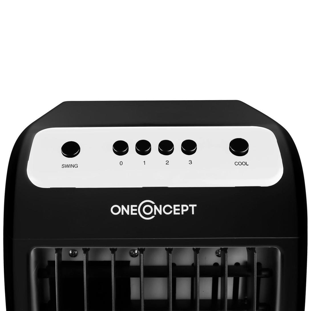 Chladič vzduchu CarribeanBlue od spoločnosti oneConcept zaboduje aj svojim dizajnom. Je to kompaktné zariadenie, ktoré sa hodí do mnohých priestorov, kde sa vrtuľové ventilátory nezmestia. Jeho konštrukcia je z pekného bieleho plastu s čiernym lemom hrán a dá sa ľahko vyčistiť s prachovkou alebo vlhkou utierkou.
