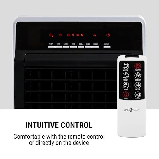 Zariadenie predstavuje šikovnú kombináciu ventilátora a klimatizácie, ktoré ochladzujú miestnosť chladným vzduchom. Vzduch sa ochladzuje odparovaním vody/ľadu z 8-litrového zásobníka. Okrem chladenia zariadenie obsahuje dodatočné ventilátory na zvlhčenie, čistenie a iónizovanie pre optimálne zlepšenie kvality vzduchu.