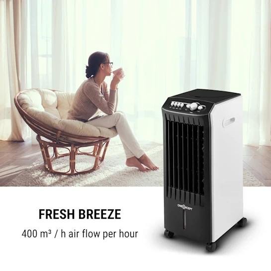 Zariadenie predstavuje šikovnú kombináciu ventilátora a klimatizácie, ktoré ochladzujú miestnosť chladným vzduchom. Vzduch sa ochladzuje odparovaním vody/ľadu z 8-litrového zásobníka. Okrem chladenia zariadenie obsahuje dodatočné ventilátory na zvlhčenie a čistenie pre optimálne zlepšenie kvality vzduchu.