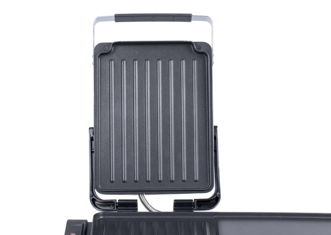 Je praktickou kombináciou kontaktného grilu a grilovacej dosky, pričom obe časti fungujú nezávisle a na oboch možno simultánne nastaviť rôznu teplotu grilovania až do 210 0C podľa toho, či práve grilujete pláty cukety, pstruha, alebo potrebujete gril „vypiecť“ na poctivé ugrilovanie jahňacej kotlety.