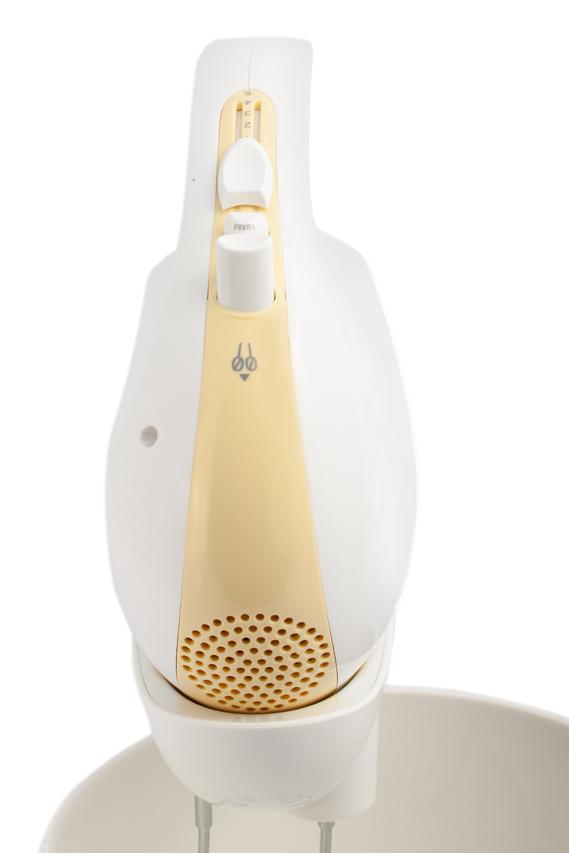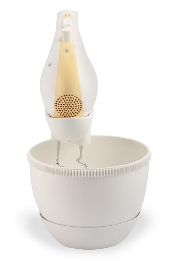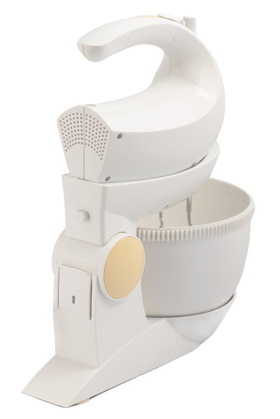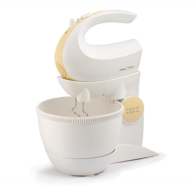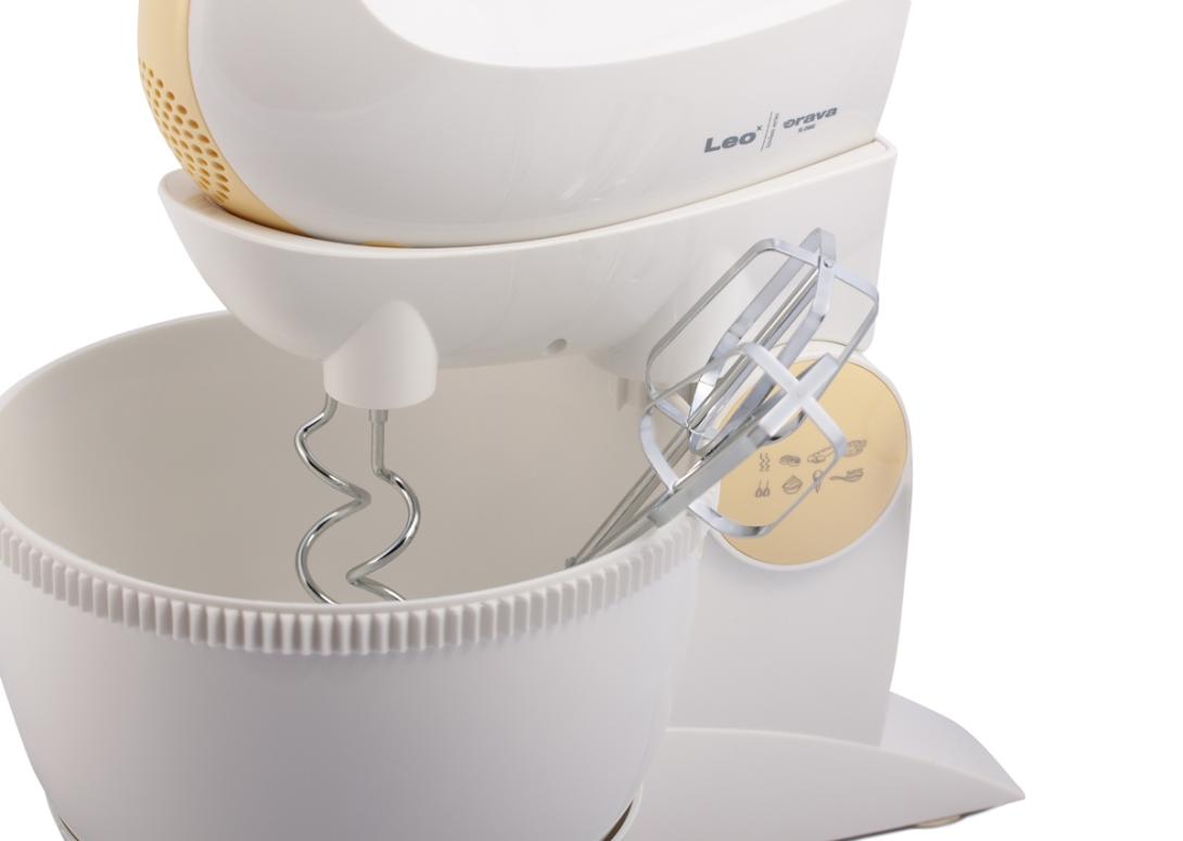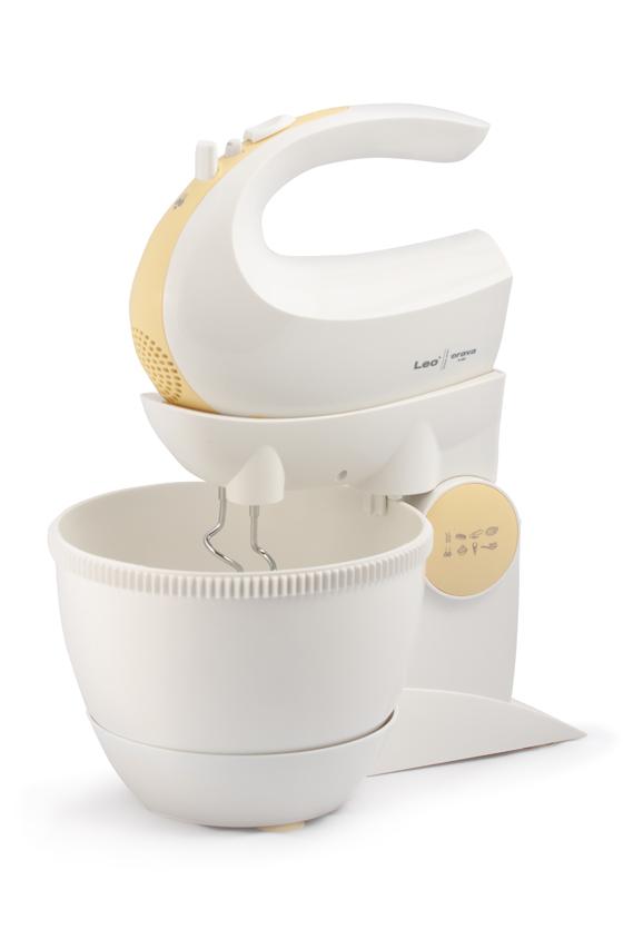 Súčasťou je otočná nádoba s mechanickým pohonom a bohaté príslušenstvo. Spoločne s ručným šľahačom získate tiež dvojicu veľmi výkonných hákov na miešanie a dve metly na šľahanie, vyrobené z ušľachtilej ocele a navyše pochrómované, dosahujú kvalitné výsledky pri šľahaní v krátkom čase.
