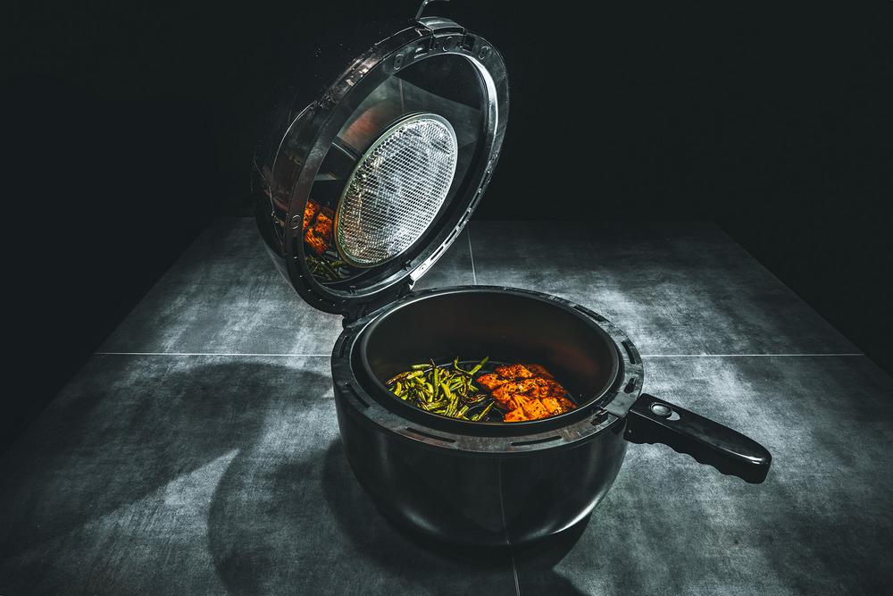 Pri fritovaní sa nemusíte báť zápachu, ktorý je bežný pri klasických fritézach. Jedlo má menej kalórií, cholesterolu a chuť zostáva stále rovnaká.