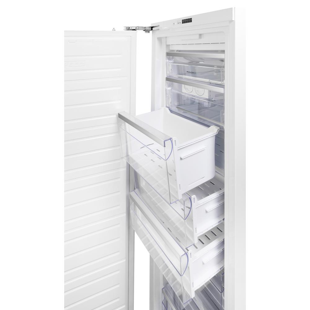 Vstavaná mraznička Philco PFN1772EBi v Nofrost technológii s elektronickým dotykovým ovládaním možno nastaviť jednotlivé teploty v mrazničke -16, -18, -20, -22, -24°C. Pomocou technológie SuperFreeze môžete rýchlo a hlboko zamraziť potraviny, ktoré sú po rozmrazení viac čerstvé, pretože obsahujú menej vody než štandardne zamrazené potraviny. Vďaka LED osvetleniu máte nielen dokonalý perfektný prehľad o uložených potravinách, ale aj vyššiu úsporu elektrickej energie.