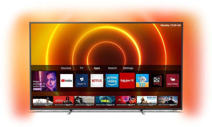 - Funkcia: Ambilight+hue, hudba s funkciou Ambilight, herný režim, funkcia prispôsobenia sa farbám stien, režim Lounge