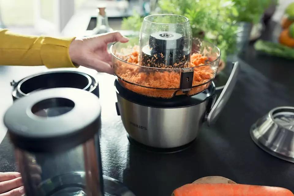 Šetrite čas a začnite odšťavovať rýchlejšie. Väčšinu ovocia a zeleniny už viac nemusíte krájať, aby sa do tohto odšťavovača zmestila. Jednoducho to všetko vložte do 80 mm podávacej trubice XXL a každý deň si vychutnávajte zvýšený príjem živín.