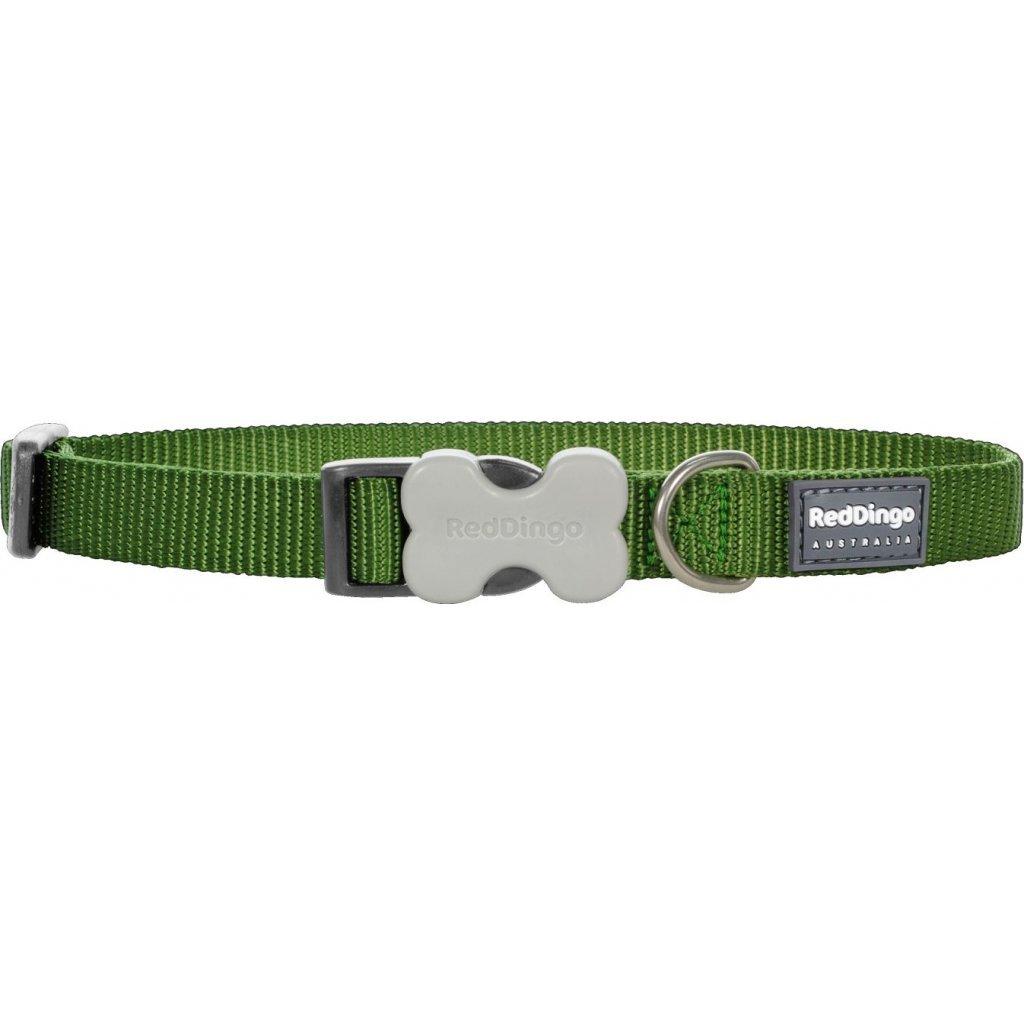 Nylonový obojok pre psa tmavo zelenej farby od austrálskej značky RED DINGO. Tieto obojky sú veľmi kvalitné, trvácne, pevné a vyzerajú na psíkovi výborne. Obojky sú vyrobené z veľmi kvalitného a pevného nylonového materiálu. Jedinečná spona v tvare kosti BUCKLEBONE je jednou z najpevnejších spôn na trhu. Všetky obojky sú nastaviteľné a D krúžok je z nehrdzavejúcej ocele.