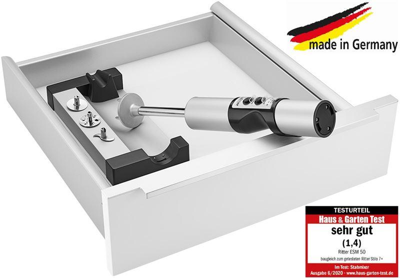 Vstavaný ručný mixér Ritter ESM50 ponúka bezdrôtovú prevádzku a jednoduché vstavané uloženie. Nabíjacia stanica je pevne namontovaná v zásuvke a odnímateľná bez použitia akéhokoľvek náradia. Tento ručný mixér budete mať vždy po ruke a prostredníctvom inteligentnej nabíjacej technológie s vždy nabitou batériou. Bezdrôtové pripojenie zaručí maximálnu voľnosť varenia a vy sa budete cítiť ako v budúcnosti.
